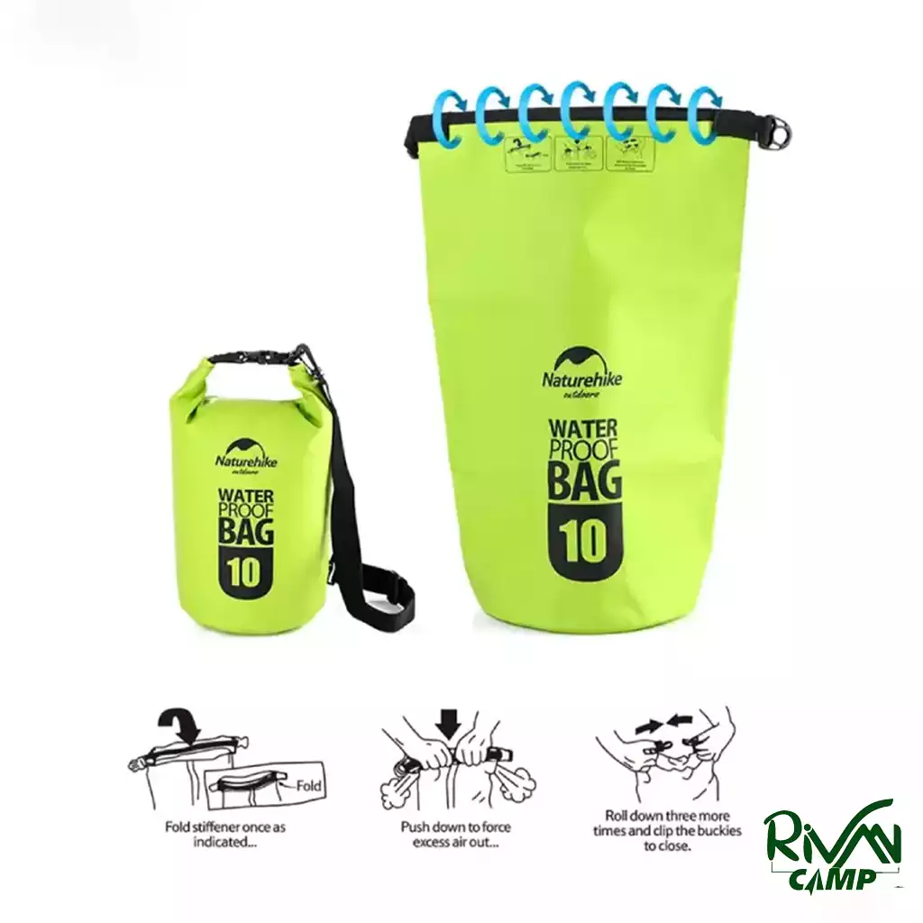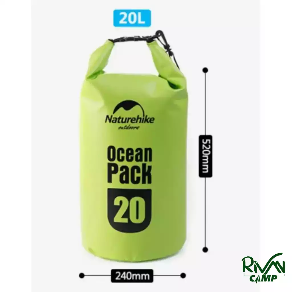 درای بگ ضد آب 500D دریایی 20 لیتری نیچرهایک مدل FS15M020-J با جنس PVC تارپولین مقاوم، درزهای جوش داده شده، سیستم رولتاپ و قابلیت شناور ماندن، محافظی مطمئن برای تجهیزات در کمپینگ و ورزشهای آبی است.
