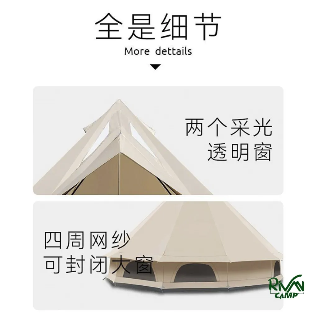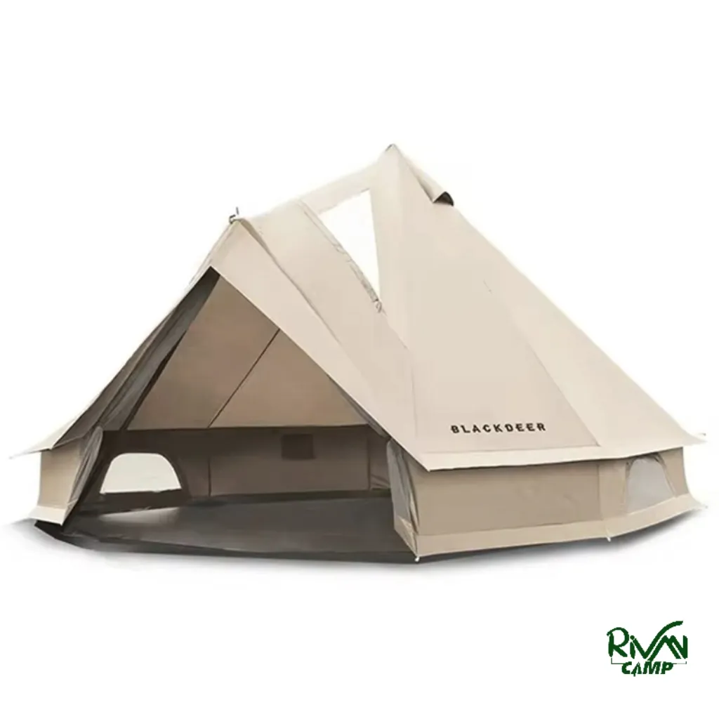 این چادر با ظرفیت ۸ تا ۱۲ نفر، برای خانوادههای پرجمعیت یا گروههای دوستانه طراحی شده است. شکل سرخپوستی (تیپی) آن، علاوه بر زیبایی، باعث پایداری بیشتر در برابر باد میشود. ارتفاع بلند چادر (۲۲۰ سانتیمتر) اجازه میدهد کاربران درون آن بهراحتی بایستند و جابهجا شوند.