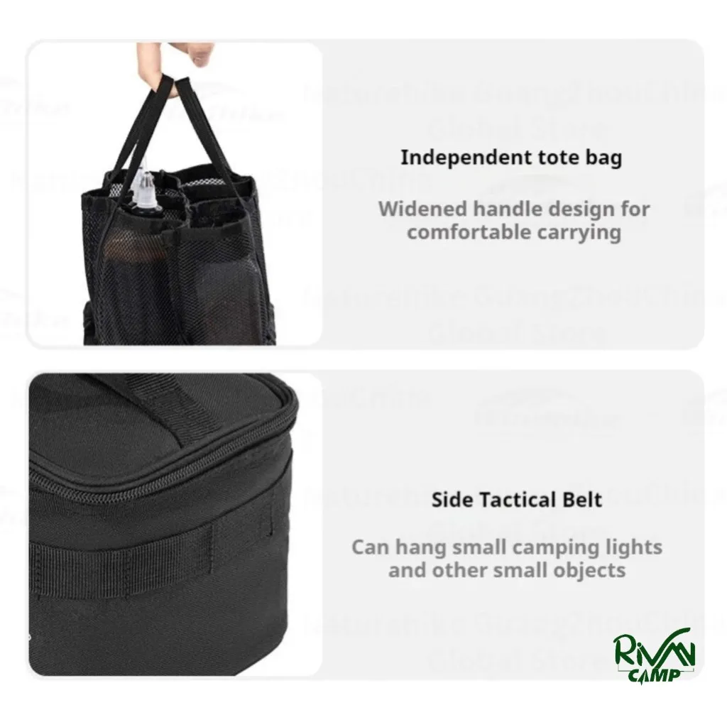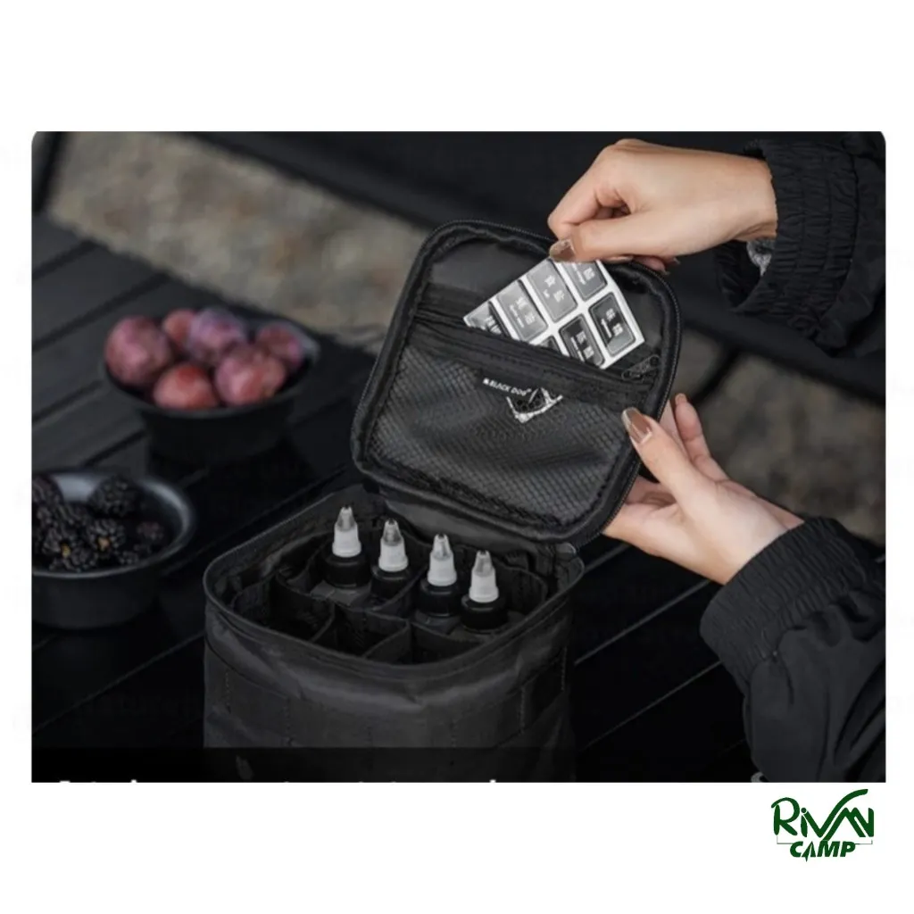 ست ادویه بلک داگ مدل CBD2450XB019 با ۳ ظرف ادویه و ۴ بطری مایع، کیف مقاوم ضدآب، ابعاد جمع‌وجور و حمل آسان، مواد با دوام و طراحی منظم برای نگهداری ادویه‌ها و مایعات.