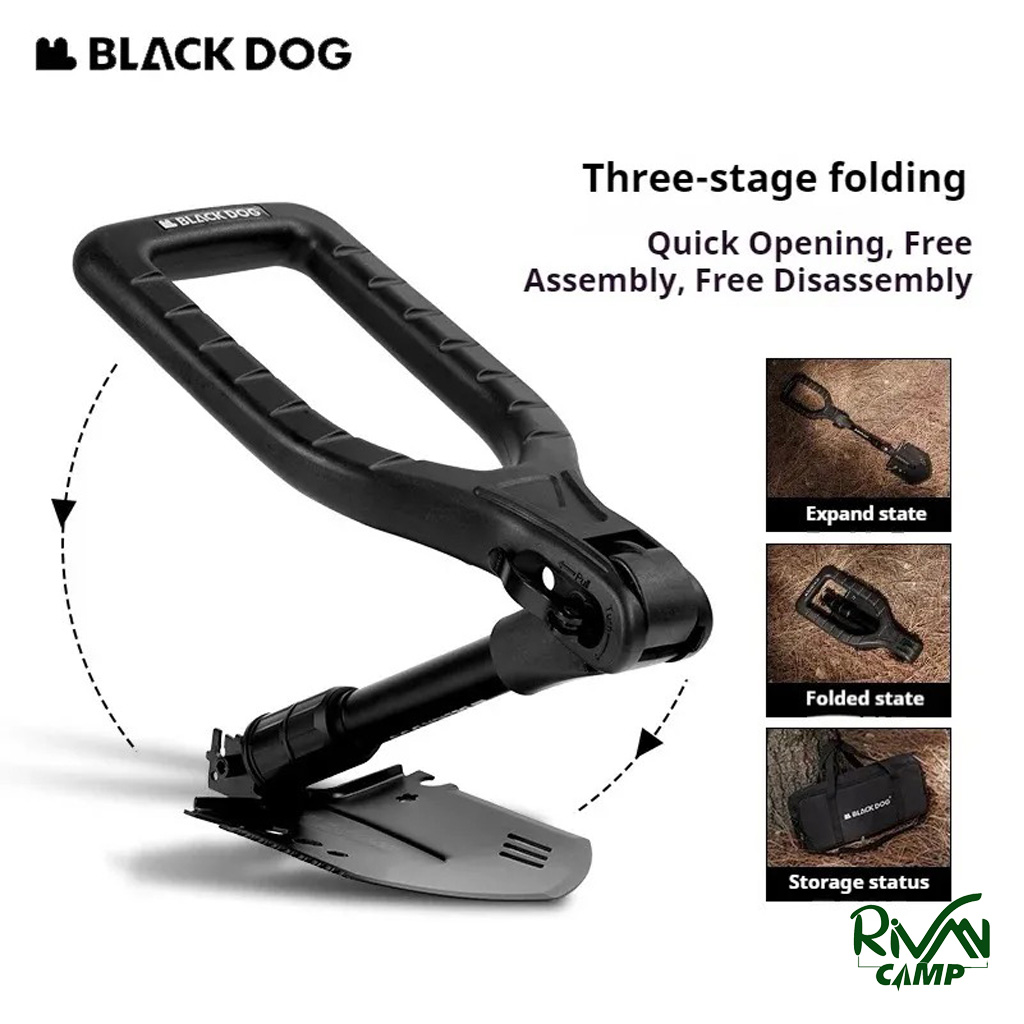 بیل مکانیکی و تاشو بلک داگ مدل CBD2450PJ018 طراحی تاشو سه مرحلهای دارد که حمل و نقل آن را آسان میکند و به راحتی میتوانید آن را در کولهپشتی یا صندوق عقب خودرو قرار دهید.