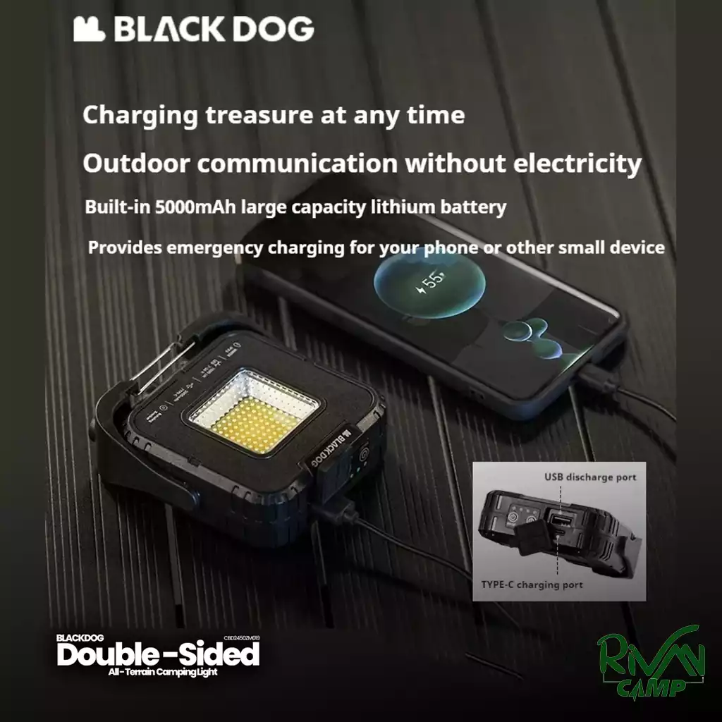 چراغ کمپینگ دوطرفه بلک داگ مدل CBD2450ZM019 با وزن سبک 173 گرم، پوشش نوری 20 متر مربعی، باتری 5000 میلیآمپر ساعتی با شارژدهی 7 تا 20 ساعت، بدنه مقاوم ABS+PC و استاندارد IPX5 بهترین انتخاب برای سفر، کمپینگ و استفاده در شرایط جوی مختلف است.