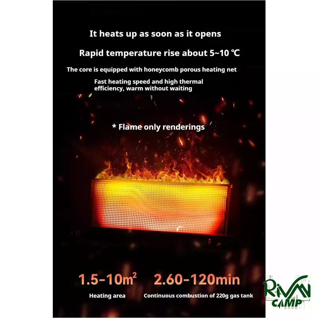 طراحی با توری متخلخل لانه زنبوری نیز باعث میشود گرما به شکل یکنواخت پخش شود و راندمان حرارتی افزایش یابد. گرمای این اجاق گاز متمرکز و پایدار پخش میشود و میتواند دمای محیط را در مدت کوتاهی بین 5 الی 10 درجه سانتیگراد افزایش دهد.