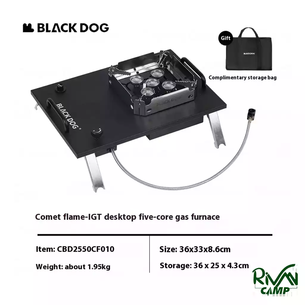 ابعاد اجاق گاز رومیزی 5 هسته بلک داگ مدل CBD2550CF010 در حالت باز 36×33×8.6 سانتیمتر و در حالت جمعشده 36×25×4.3 سانتیمتر است. این ویژگی در کنار وزن سبک 1.92 کیلوگرمی باعث میشود جابهجایی آن ساده و راحت باشد. این اجاق گاز را بدون اینکه فضای زیادی بگیرد، میتوانید با خودتان به سفرهای کوهستانی یا کمپینگ ببرید و غذاهای مورد علاقه خود را در دل طبیعت درست کنید.