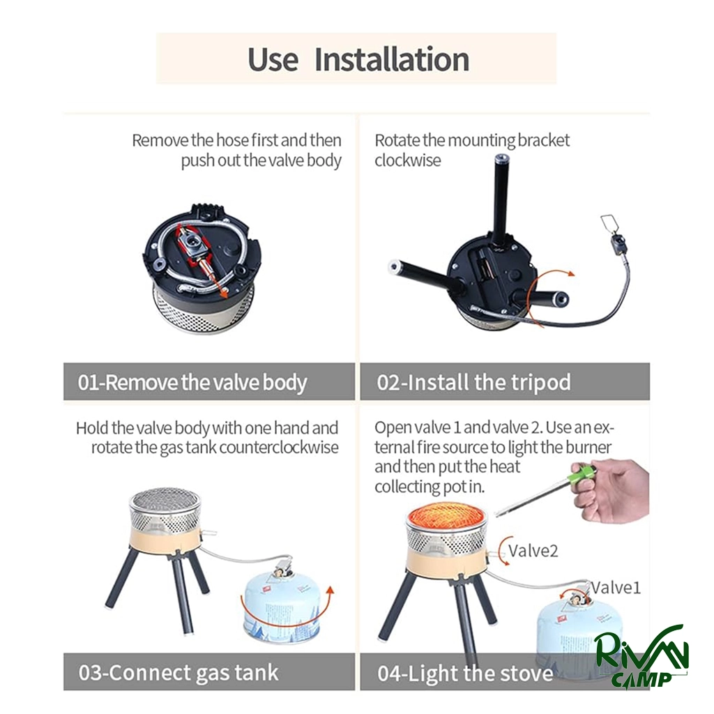 اجاق با گاز مایع (پروپان یا بوتان) کار میکند و توان حرارتی آن 1900 وات است. مصرف سوخت حدود 100 تا 120 گرم در ساعت است و پخت سریع و یکنواخت غذا را ممکن میسازد.