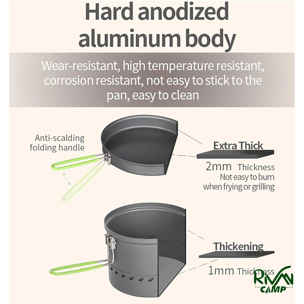 ابعاد اجاق 10.5 × 8.5 × 19 سانتیمتر و وزن آن 0.42 کیلوگرم است. دیگ حرارتگیر دارای ظرفیت 1.7 لیتر و ابعاد 185 × 137 میلیمتر است. این ظرفیت برای آماده کردن غذا برای 2 تا 3 نفر مناسب است.