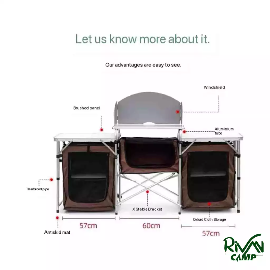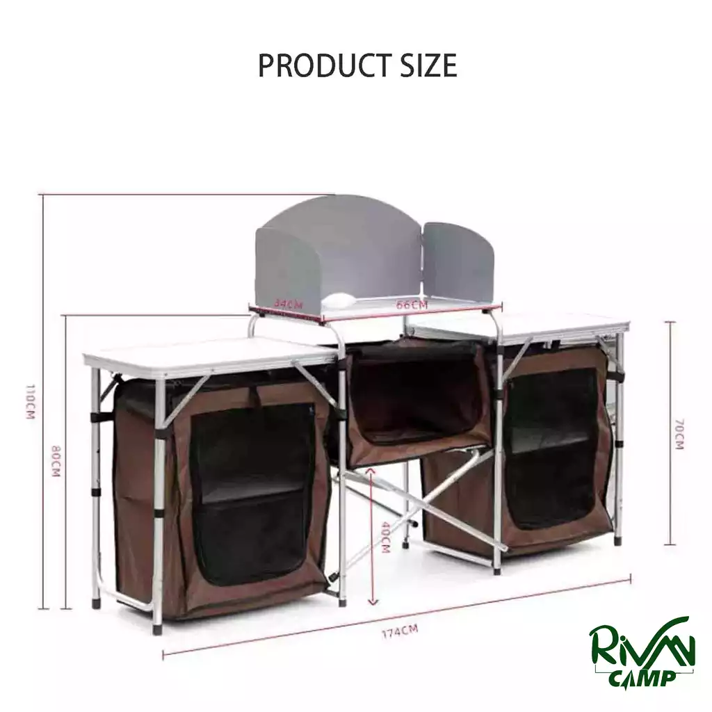 کابینت آشپزخانه FX-7017-1 تنها یک میز ساده نیست؛ بلکه یک ایستگاه کامل برای پخت و پز در طبیعت است. میتوانید از آن بهعنوان میز باربیکیو، استیشن آمادهسازی غذا یا فضای نگهداری تجهیزات استفاده کنید.