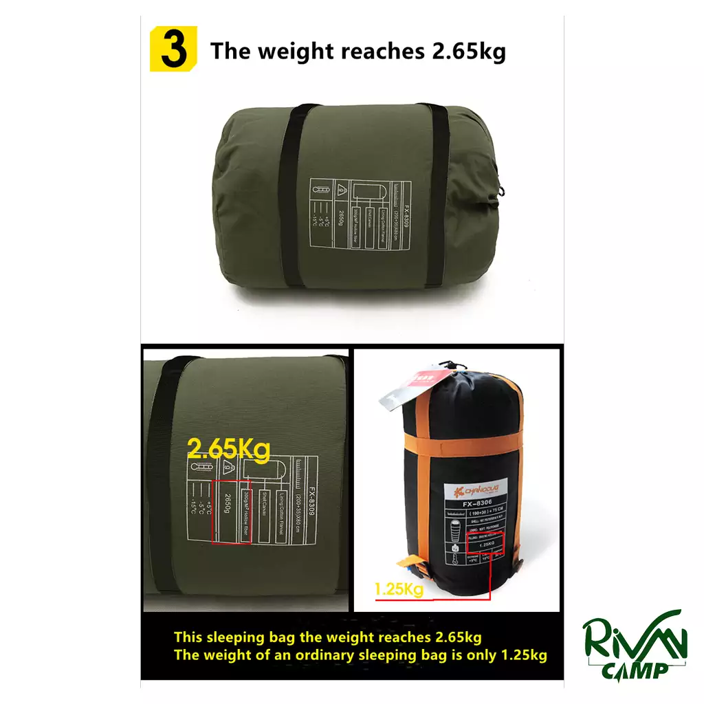 وزن سبک کیسه خواب پاکتی چانوداگ مدل FX-8309 (حدود ۱.۵ کیلوگرم) در کنار طراحی فشرده، باعث میشود بتوانید آن را به راحتی در کوله پشتی یا صندوق خودرو حمل کنید. همراه کیسه خواب، یک کاور فشرده پارچهای عرضه میشود که فضای کمی اشغال کرده و حملونقل را بسیار آسان میکند.