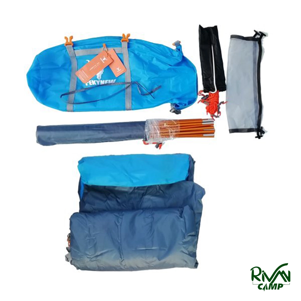چادرکوهنوردی 2 نفره پکینیو مدل PKN-C2001-B، دوپوش با تیرک آلومینیومی، جنس پلیاستر ضد آب و UV، وزن ۲۶۰۰ گرم، ابعاد ۲۱۰×۲۶۰×۱۰۵ سانتیمتر، زیپ و سگک SBS، ضد باد و مناسب کوهنوردی و طبیعتگردی.