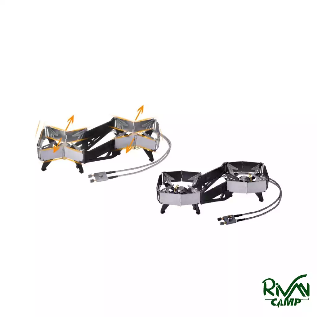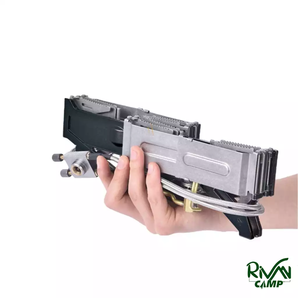 سرشعله کمپینگ تاشو دو شعله BRS مدل BRS-32 یکی از تجهیزات حرفهای کمپینگ است که با وزن ۱۰۳۰ گرم طراحی شده است و به دلیل قابلیت جمع شدن، حمل آسانی دارد. این مدل در حالت جمعشده ۳۰ × ۶.۵ × ۹.۵ سانتیمتر فضا اشغال میکند، در حالت باز نیز ابعاد آن به ۴۱.۵ × ۱۸.۷ × ۹.۵ سانتیمتر میرسد. وجود دو شعله قدرتمند با توان خروجی ۳۸۸۰ وات (هر شعله ۱۹۴۰ وات) و مصرف سوخت ۲ × ۱۴۰ گرم در ساعت، آن را به بهترین گزینه برای آشپزی در سفرهای گروهی و کمپهای طولانی تبدیل میکند. استفاده از سوختهای مختلفی مثل بوتان، پروپان یا ترکیب پروپان–بوتان نیز انعطاف بالایی در شرایط مختلف فراهم میکند.