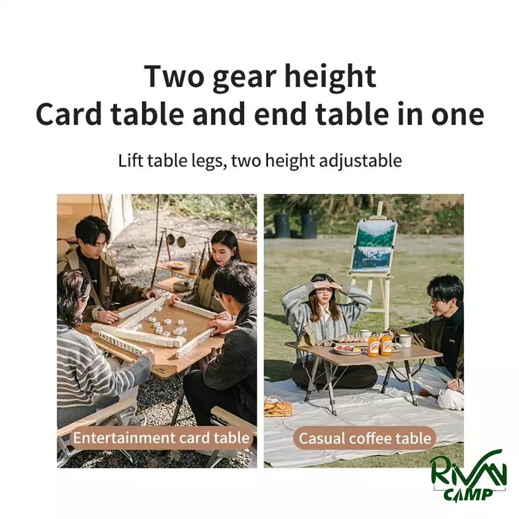 این میز با قابلیت تنظیم ارتفاع در دو حالت 39 و 60 سانتیمتر ساخته شده است. ارتفاع پایین برای نشستن روی زمین یا استفاده در کمپینگ مناسب است؛ ابعاد بلندتر نیز برای صندلیهای استاندارد و کاربردی مناسب خواهد بود.