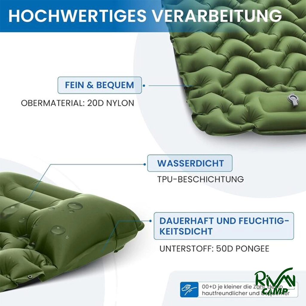 رویۀ نایلون 20D با روکش TPU و زیرۀ پلیاستر 50D باعث مقاومت بالا در برابر سایش و نفوذ رطوبت میشود. این مواد دوام زیرانداز را تضمین کرده و استفاده طولانیمدت در محیطهای مختلف را امکانپذیر میکنند. کیفیت ساخت باعث میشود زیرانداز برای کمپینگهای مکرر مناسب باشد.