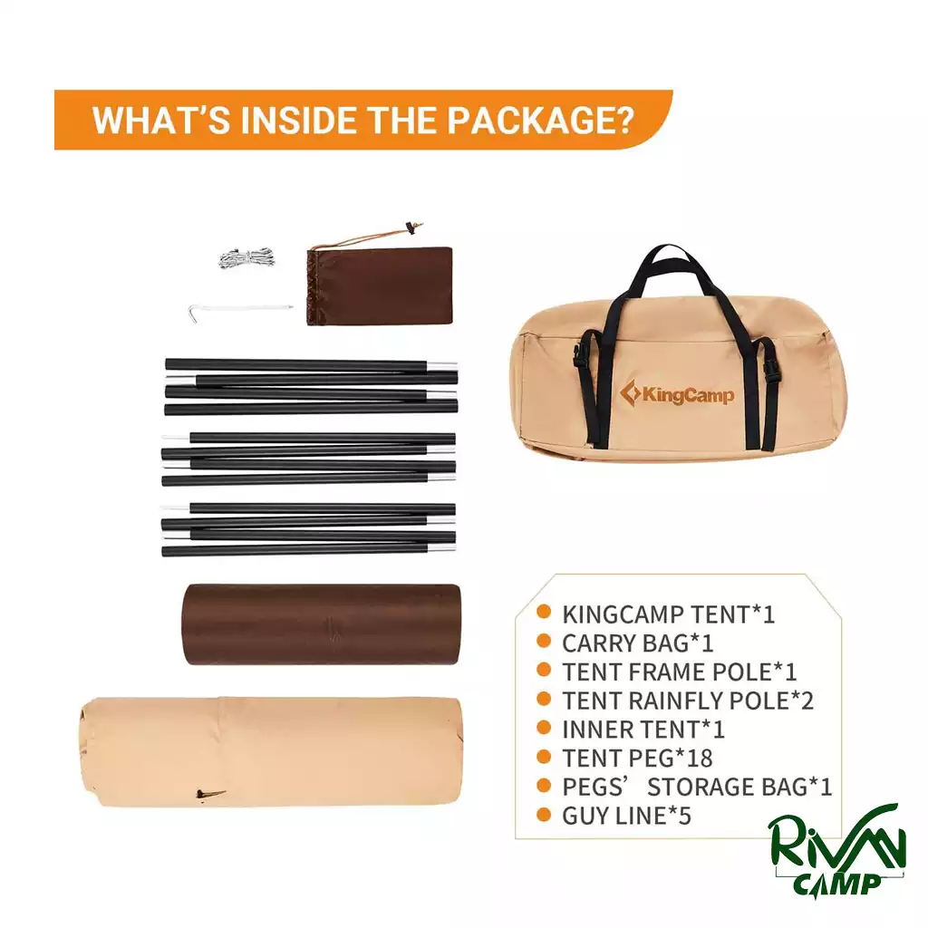 چادر سرخ پوستی کینگ کمپ مدل KHAKI-KT2219 یک چادر دو نفره مستقل با سازه آلومینیومی سبک، پارچه مقاوم 150D آکسفورد، کف ضد آب و طراحی چهار فصل است که با وزن 5.7 کیلوگرم و دو درب مجزا، گزینهای مناسب برای کمپینگ حرفهای و طبیعتگردی در شرایط مختلف آب و هوایی محسوب میشود.
