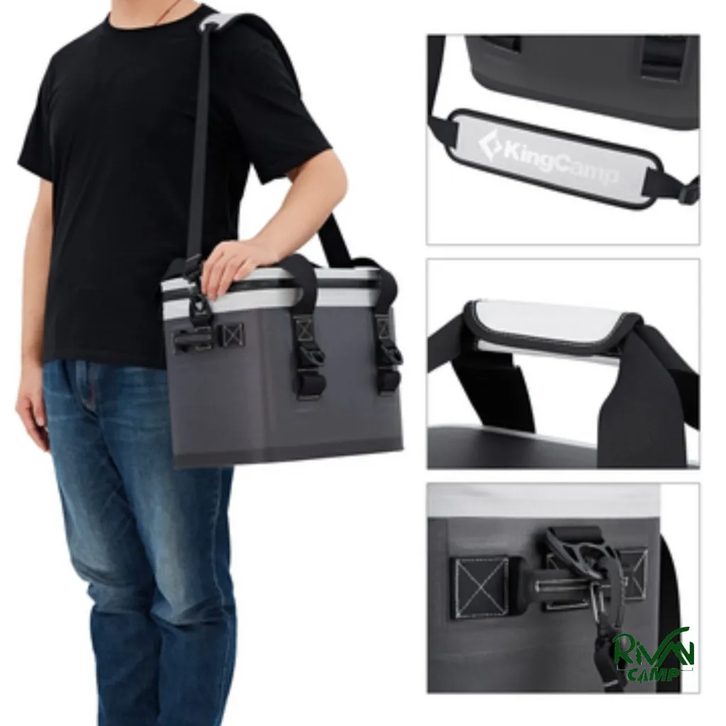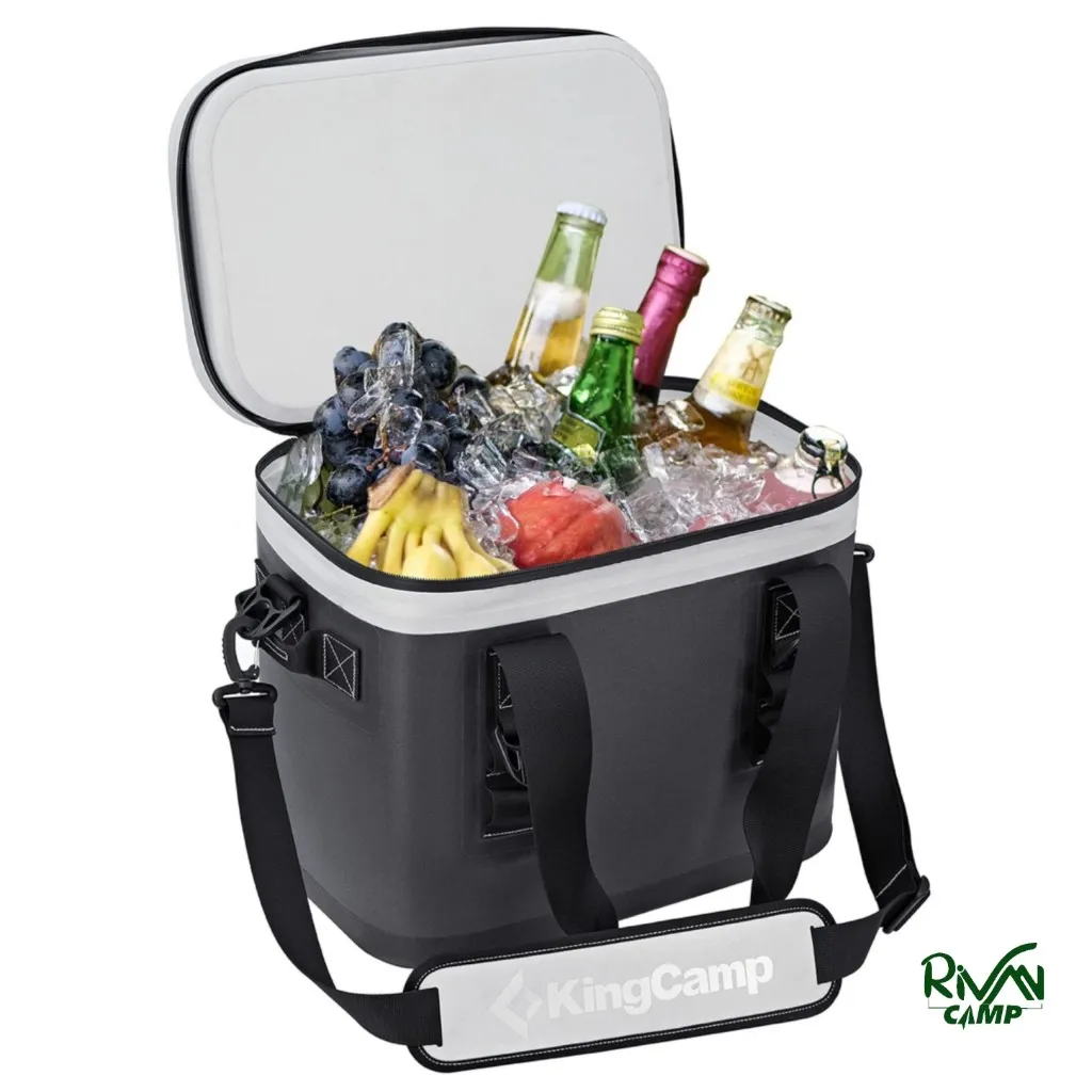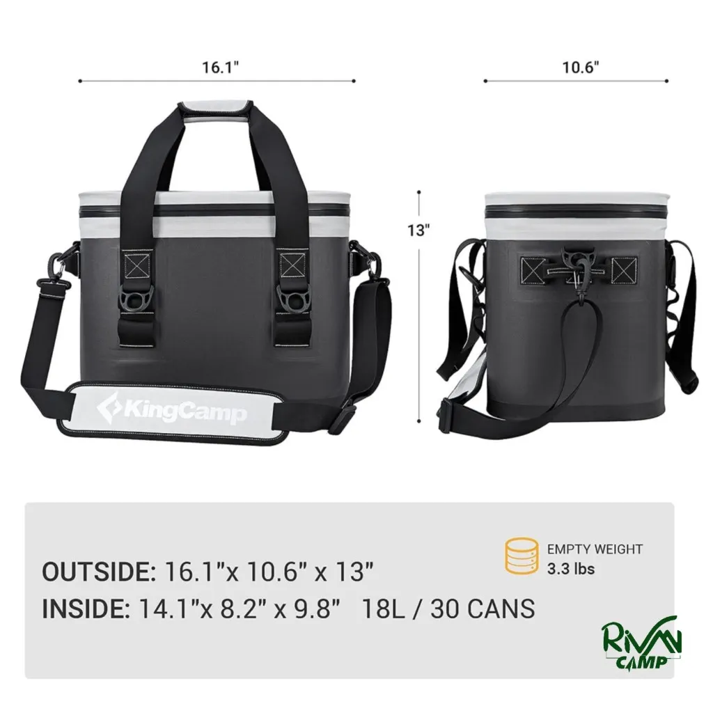 کول باکس مسافرتی کینگ کمپ مدل KP2107، ظرفیت ۱۸ لیتر، مناسب برای نگهداری ۳۰ قوطی نوشیدنی، ابعاد جمع و جور، جنس مقاوم ۶۰۰D Oxford با پوشش TPU، عایق‌بندی سه لایه شامل فوم فشرده، نگهداری سرما تا ۴۸ ساعت، زیپ ضد نشت و ضدآب.