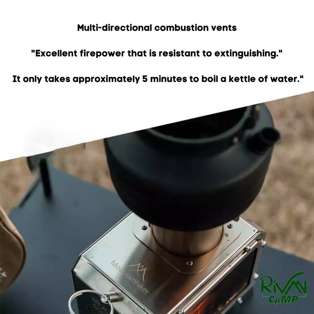 پایه و سطح بخاری هیزمی لارج ماونتین هایکر مدل SZK841 با طراحی موجی ضدلغزش ساخته شده است تا پایداری اجاق حتی روی سطوح ناصاف حفظ شود. این ویژگی از سر خوردن یا واژگونی ظروف و کتریها جلوگیری میکند و امکان استفاده مطمئن از بخاری را فراهم میکند.