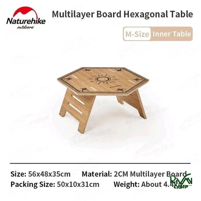 میز شش ضلعی چند لایه نیچرهایک مدل NH21JU004 با طراحی ماژولار و مهندسی شده، ترکیبی از زیبایی و کارایی را ارائه میدهد. این میز در دو مدل بیرونی (M و L) و دو مدل داخلی (M و L) عرضه میشود تا بسته به نیاز و فضای مورد استفاده، انتخاب مناسبی داشته باشید. ابعاد میز بیرونی مدل M برابر با ۱۰۸ × ۹۴ × ۲۵ سانتیمتر و مدل L برابر با ۱۳۲ × ۱۱۵ × ۲۵ سانتیمتر است، در حالی که میزهای داخلی مدل M دارای ابعاد ۵۶ × ۴۸ × ۳۵ سانتیمتر و مدل L برابر با ۸۱ × ۷۰ × ۳۵ سانتیمتر هستند.