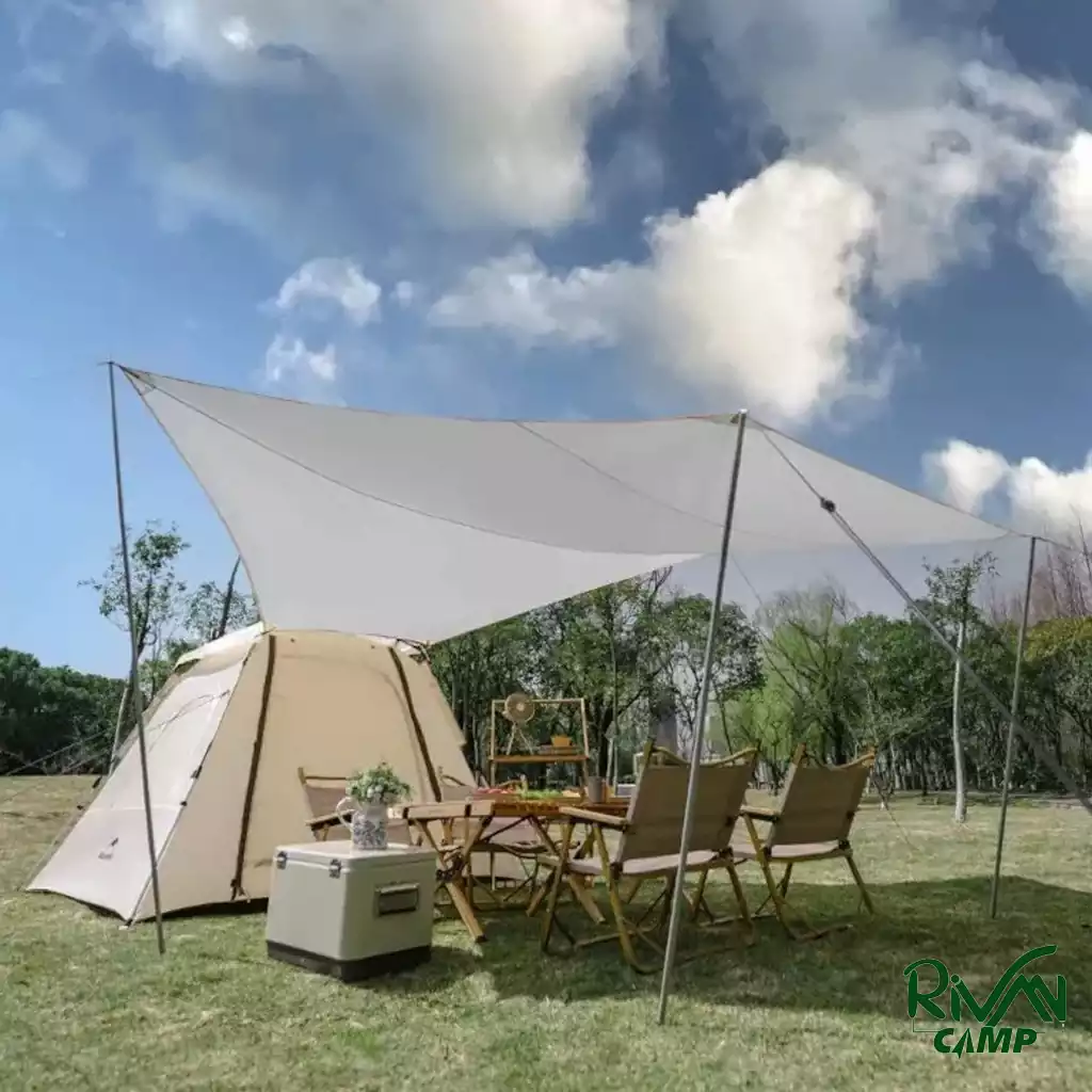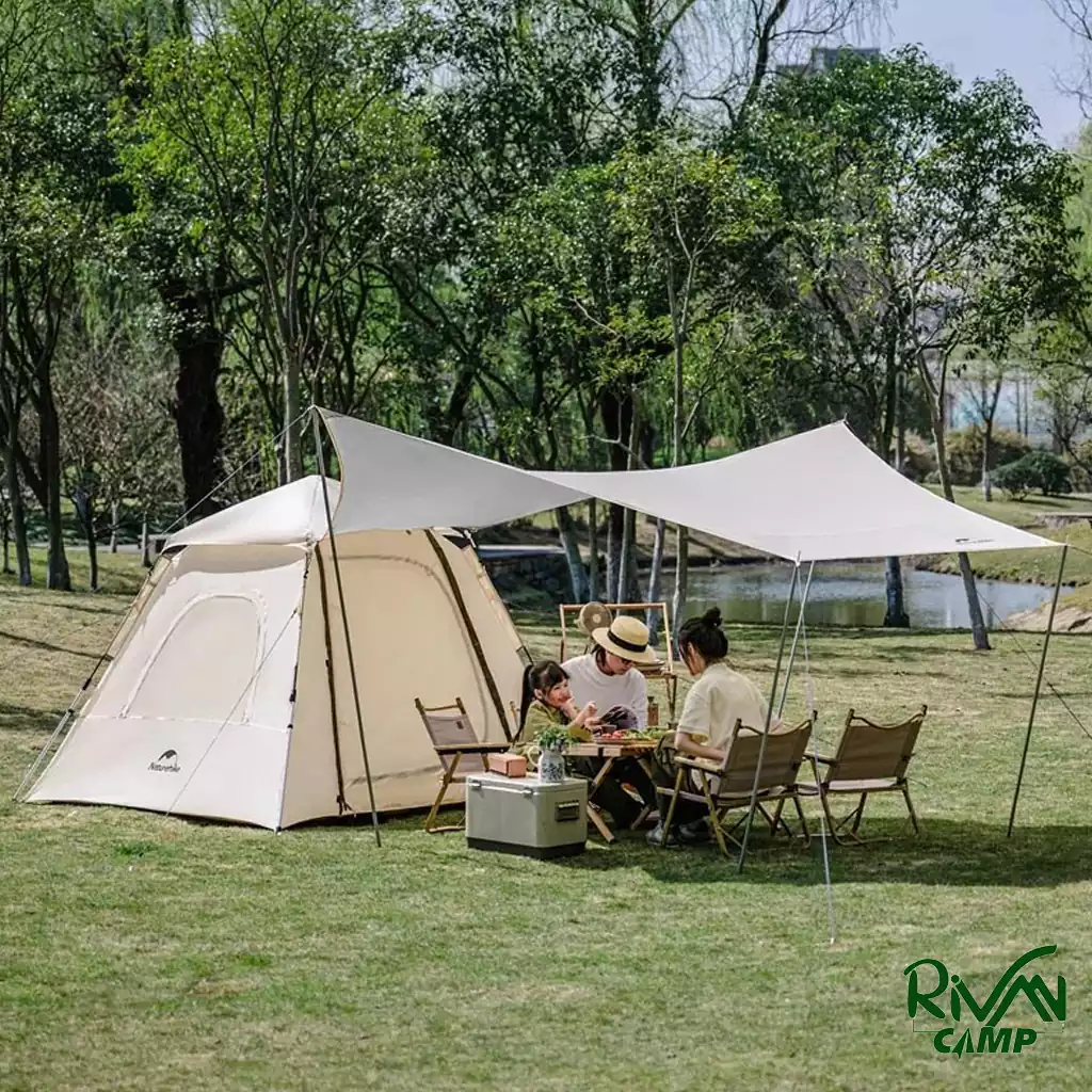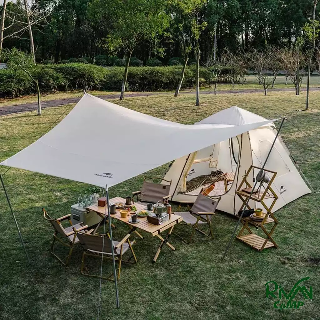 علاوه بر فضای داخلی، سایبان بزرگ این چادر با ابعاد 336 × 355 سانتی‌متر، محل مناسبی برای پخت‌وپز، نشستن و استراحت در هوای آفتابی یا بارانی فراهم می‌کند. سایبان با پوشش نقره‌ای علاوه بر کاهش دمای داخل، از تابش مستقیم اشعه UV با شاخص UPF50 محافظت می‌کند.
