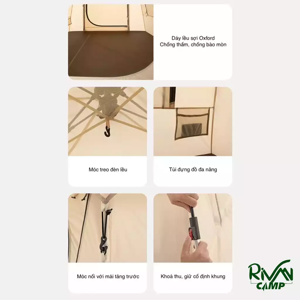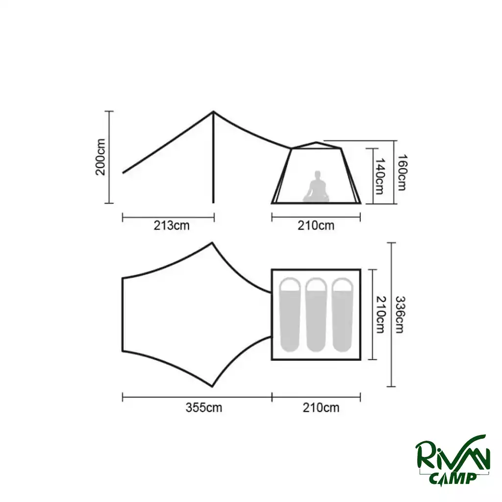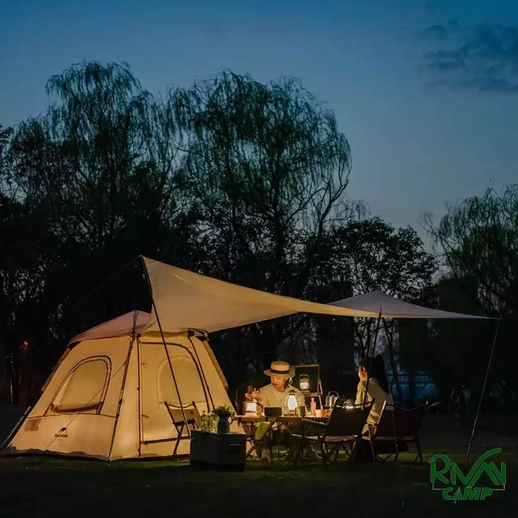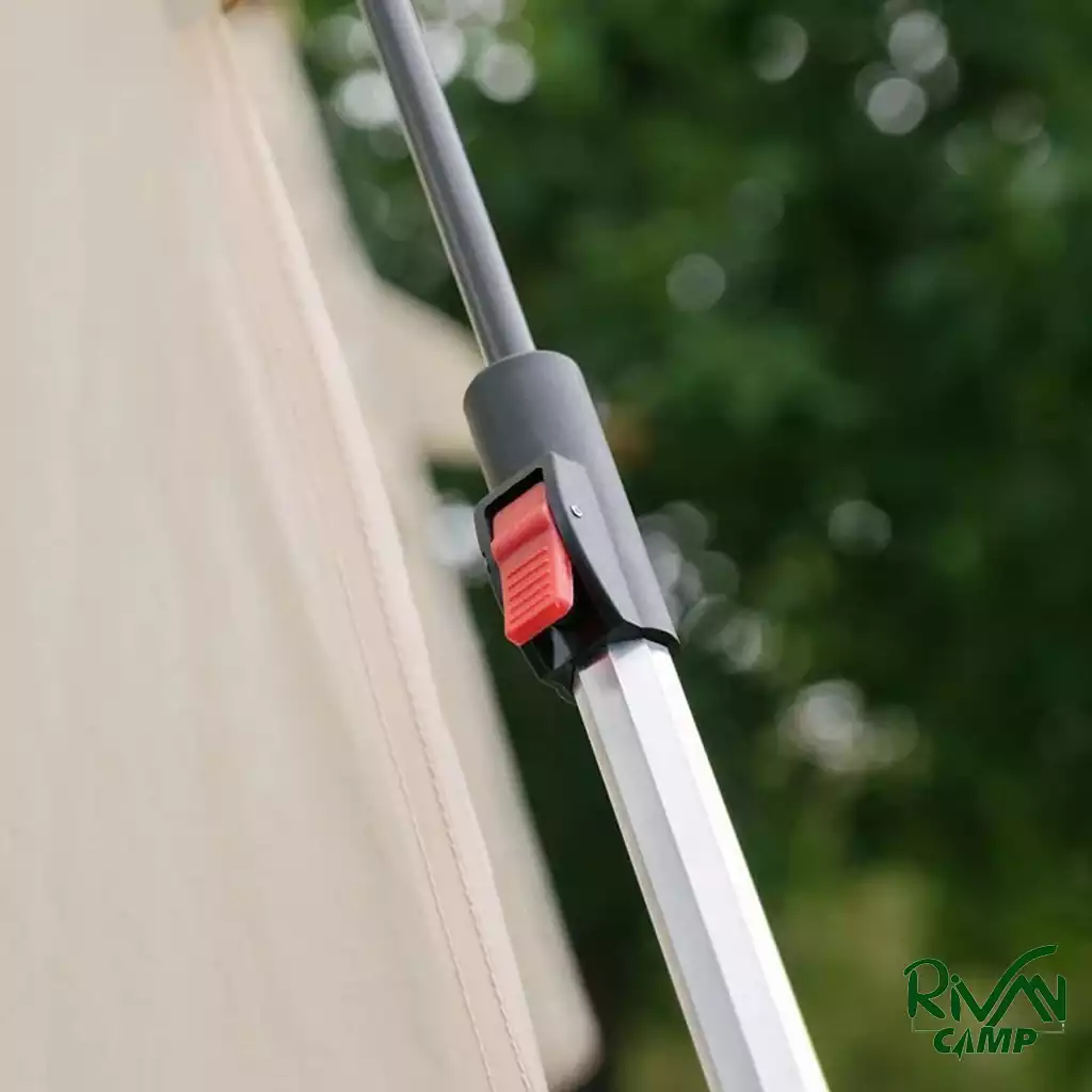 علاوه بر فضای داخلی، سایبان بزرگ این چادر با ابعاد 336 × 355 سانتی‌متر، محل مناسبی برای پخت‌وپز، نشستن و استراحت در هوای آفتابی یا بارانی فراهم می‌کند. سایبان با پوشش نقره‌ای علاوه بر کاهش دمای داخل، از تابش مستقیم اشعه UV با شاخص UPF50 محافظت می‌کند.