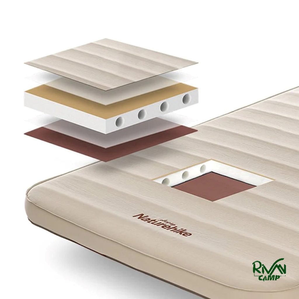زیرانداز نیچرهایک مدل NH20FCD08 با ترکیب پارچه پلیاستر 30D و فوم اسفنجی ساخته شده تا در برابر سایش و فشار مقاومت خوبی داشته باشد. ضخامت ۱۰ سانتیمتری فوم باعث میشود سطحی نرم و یکنواخت برای استراحت فراهم شود. پارچه بیرونی ضدرطوبت بوده و در تماس با زمین مرطوب، حس خنکی یا نم به بدن منتقل نمیشود. طراحی سهبعدی لایهها باعث گردش بهتر هوا در سطح زیرانداز و جلوگیری از تعریق در زمان استفاده طولانی میشود.