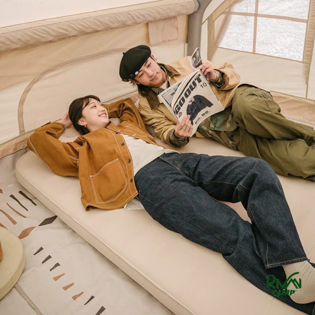 ابعاد ۲۰۰×۱۳۲ سانتیمتری زیرانداز برای دو نفر کافی است و طراحی سطح آن باعث میشود در هنگام استراحت بسیار نرم و راحت باشد. این زیرانداز برای خواب شبانه در چادر یا استراحت در فضای باز گزینهای مناسب است. فوم داخلی بهگونهای عمل میکند که سطح زمین را بهخوبی هموار کرده و حس راحتی تخت خواب را شبیهسازی میکند. به همین دلیل برای کمپینگهای طولانی یا سفرهای بینراهی انتخابی کاربردی به شمار میآید.