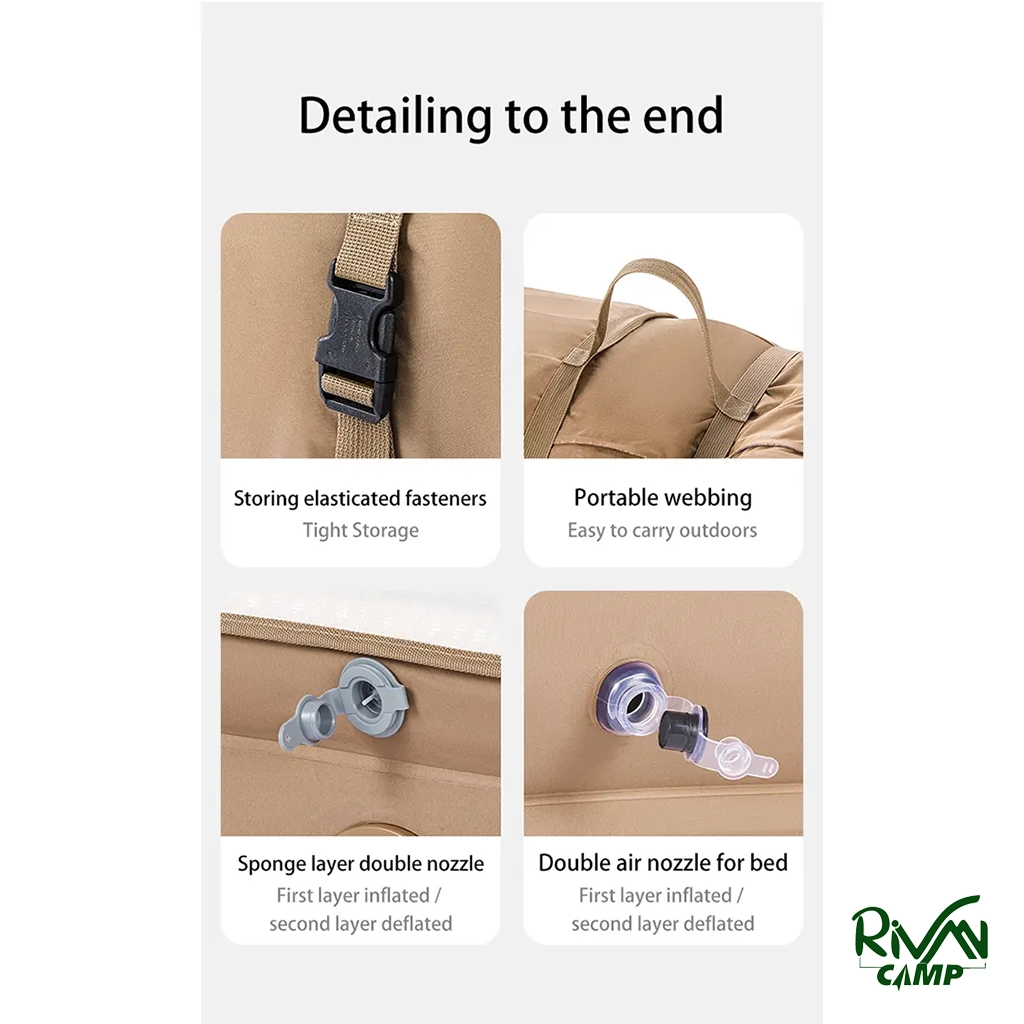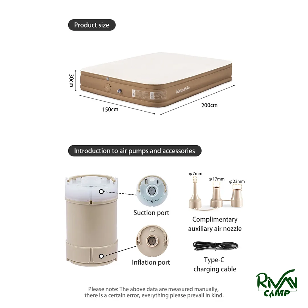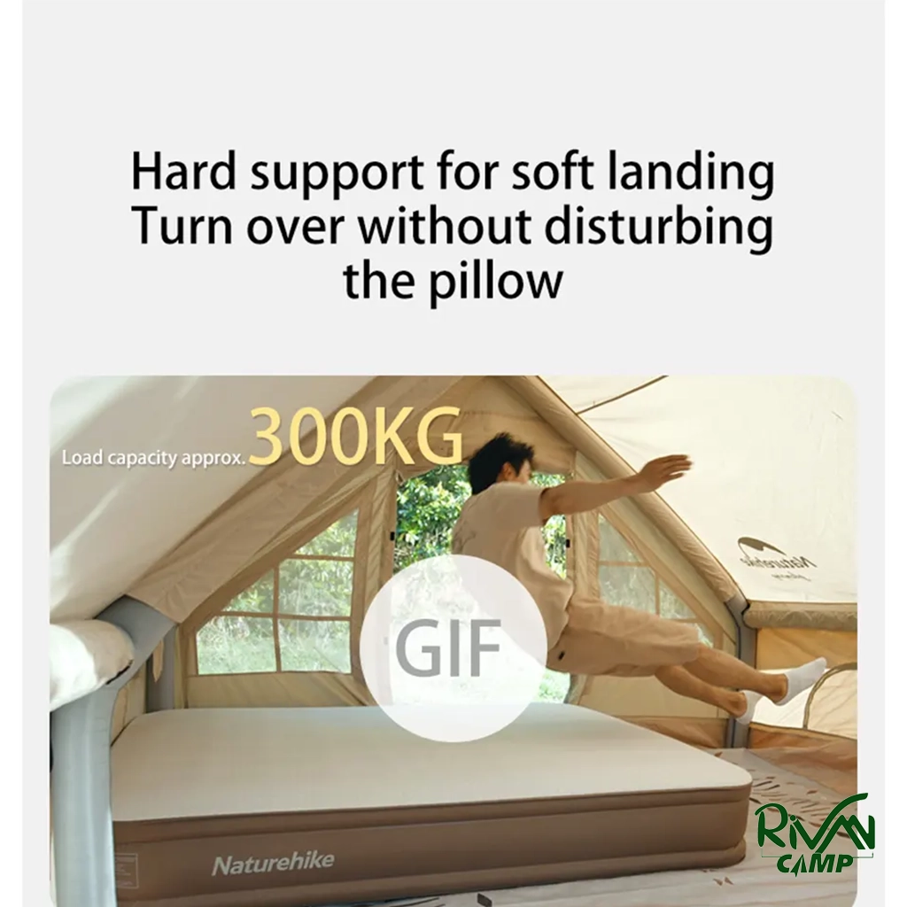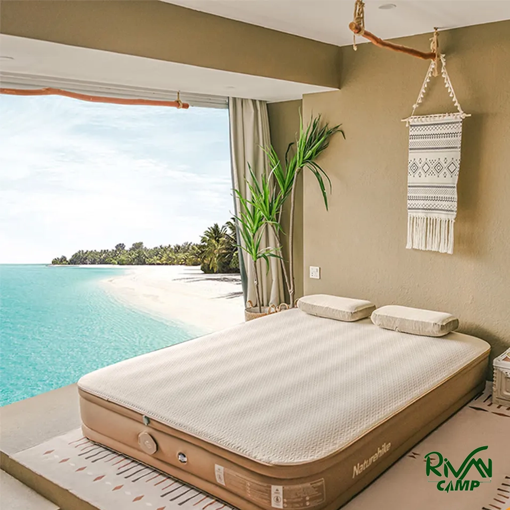 تشک بادی 2 نفره نیچرهایک مدل CNH22DZ026 با طراحی ارگونومیک توزیع یکنواخت فشار بدن. جنس PVC چندلایه مقاوم در برابر پارگی و رطوبت با سطح مخملی نرم. پمپ باد داخلی با ظرفیت ۴۵۰۰ میلی‌آمپر ساعت برای نصب سریع و باددهی آسان.