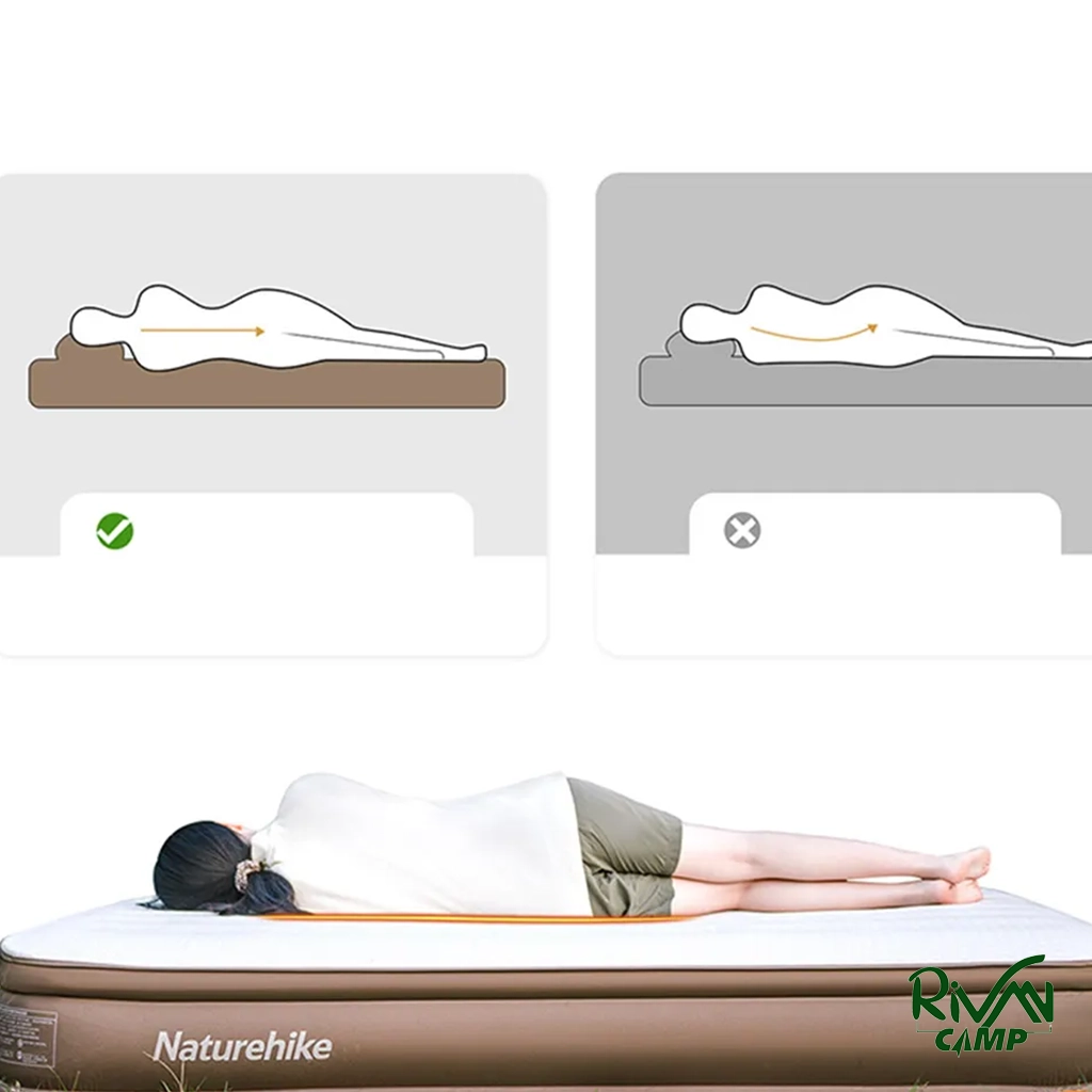 تشک بادی نیچرهایک CNH22DZ026 با طراحی ارگونومیک، فشار وزن بدن را به‌طور یکنواخت در سراسر سطح تشک پخش می‌کند. این ویژگی باعث کاهش نقاط فشار و جلوگیری از دردهای ناشی از خوابیدن روی سطوح سخت می‌شود. ارتفاع ۳۰ سانتی‌متری تشک نیز باعث افزایش راحتی و فاصله گرفتن از سطح زمین شده که در کمپینگ یا محیط‌های مختلف، باعث خواب آرام و بدون مزاحمت می‌شود.