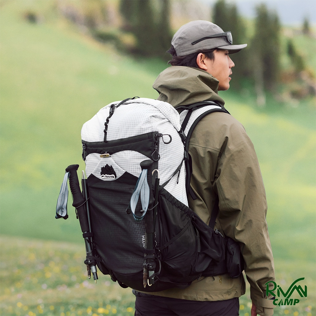 کوله پشتی ۴۰ لیتری نیچرهایک مدل CNK2450XB016 فریم آلومینیومی داخلی، پارچه ضد‌سایش و مقاوم در برابر آب، سیستم تهویه پشتی، محفظه‌های متنوع، دسترسی جانبی، محل نصب کیسه آب، کاور باران، مناسب برای صعود، طبیعت‌گردی و سفرهای چندروزه.