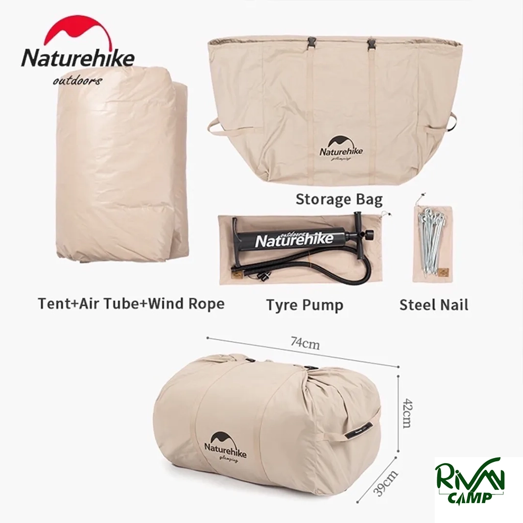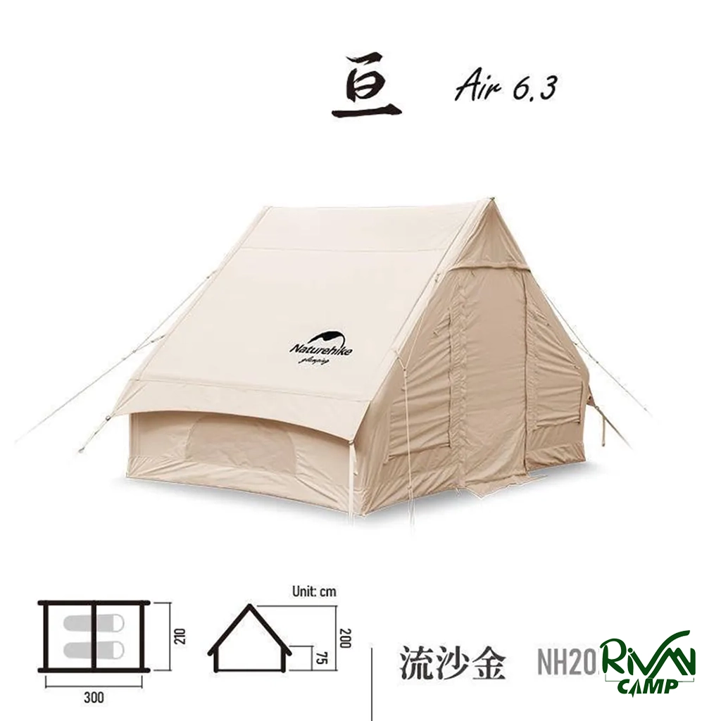 چادر کمپینگ ایر 6.3 نیچرهایک مدل NH20ZP009 جنس ترکیبی پنبه و پیویسی، ابعاد 300×210×200 سانتیمتر، وزن 20 کیلوگرم، زیپ YKK، برای 2 تا 4 نفر، لولههای هوای پیویسی، کف مقاوم پیویسی، پمپ باد، طناب و میخ فولادی، کیف ذخیرهسازی، طراحی مقاوم و کاربردی برای کمپینگ.