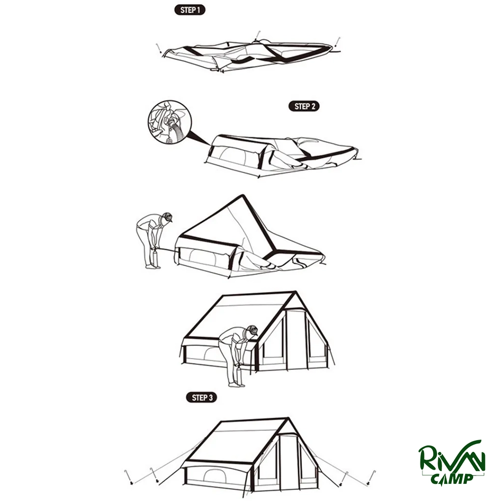 چادر همراه با پمپ باد، طناب بادگیر، میخ فولادی و کیف ذخیرهسازی عرضه میشود. این وسایل به نصب سریع و محکم چادر کمک میکنند و باعث میشوند استفاده از آن در فضای باز ساده و راحت باشد. نصب چادر بدون نیاز به سازههای پیچیده انجام میشود.