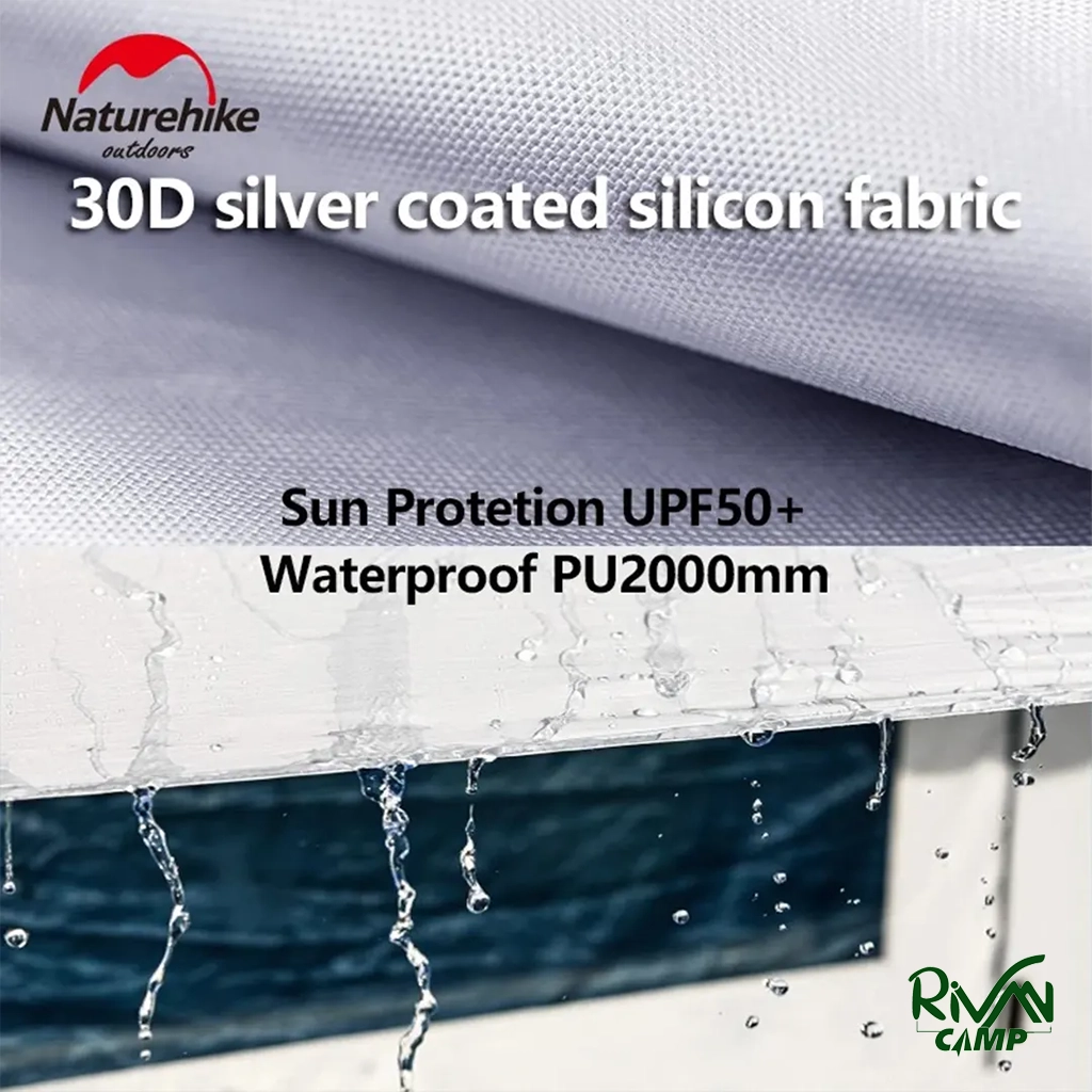 در ساخت این چادر از پلیاستر سیلیسی روکشدار، نایلون و TPUN استفاده شده که مقاومت خوبی در برابر سایش و شرایط آبوهوایی دارد. این متریال علاوه بر دوام بالا، وزن چادر را در حد مناسب نگه داشته تا حمل آن در سفرها سادهتر باشد. روکش نقرهای پلیاستر نیز باعث بهبود عملکرد ضدآفتاب با شاخص UPF50 شده و از نفوذ اشعه مضر خورشید جلوگیری میکند.