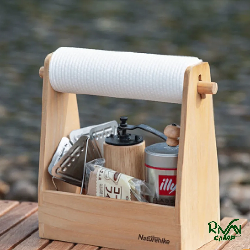 سبد نگهداری وسایل نیچرهایک مدل NH20PJ007 بسیار مقاوم از جنس کاج نیوزیلندی، طراحی ارگانیک و زیبا، دارای جای مخصوص دستمال کاغذی، مناسب برای نظم‌دهی وسایل کوچک در کمپ یا فضای باز.
