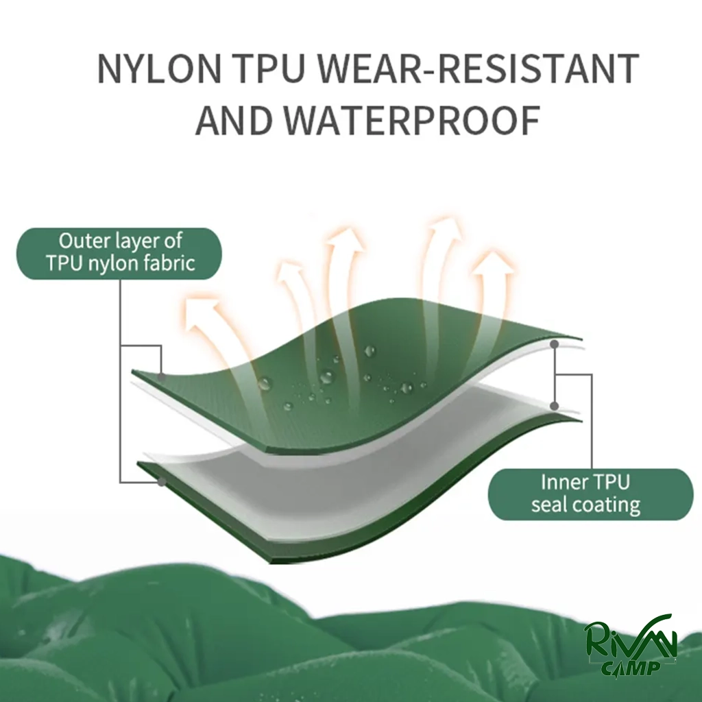 در ساخت این زیرانداز از پارچه نایلونی با روکش TPU استفاده شده که در برابر رطوبت، سایش و پارگی مقاوم است. این جنس سبک، ضد آب و قابل شست‌وشو بوده و از نفوذ سرما و رطوبت زمین به بدن جلوگیری می‌کند. سطح زیرانداز خاصیت ضد لغزش دارد تا کیسه خواب یا بدن هنگام استراحت روی آن حرکت نکند.