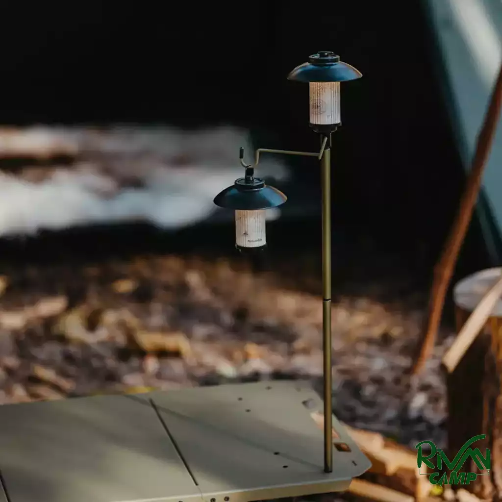یکی از ویژگی‌های این میز، پایه مخصوص آن برای نصب چراغ است. در شب‌های کمپینگ می‌توانید چراغ را از آن آویزان کنید تا به راحتی بتوانید مطالعه کنید یا غذا بخورید.