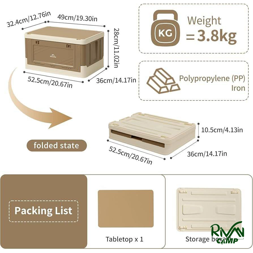 جعبه وسایل تاشو نیچرهایک مدل CNK2350XB012 طراحی تاشو با صرفهجویی بیش از ۷۰٪ در فضا. بدنه مقاوم از پلاستیک PP بدون بو و ظرفیت ۴۲ لیتر. قابلیت تحمل وزن تا ۳۰ کیلوگرم و تبدیل به میز کاربردی.