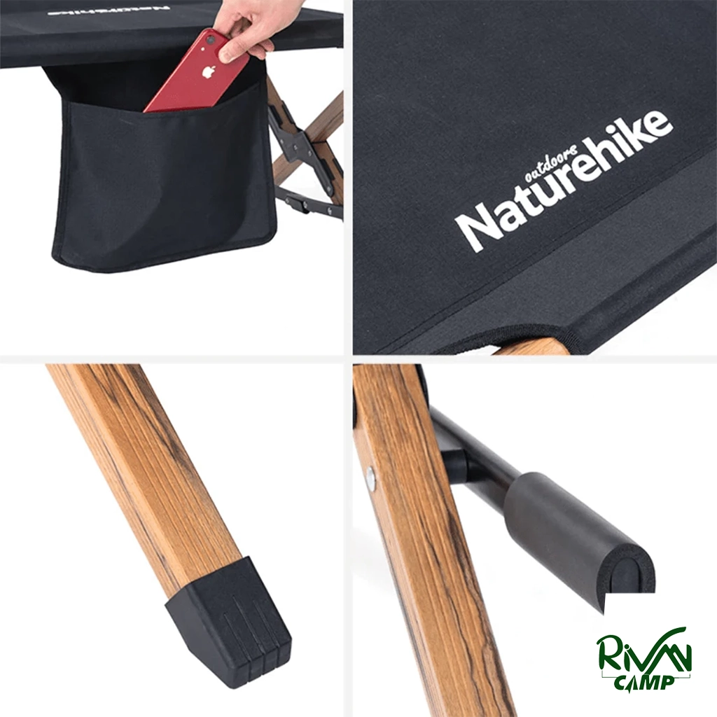 تخت تاشو XJC03 نیچرهایک با اسکلت آلومینیومی و ظاهر چوب طراحی شده که استحکام و پایداری کافی برای استفاده در فضای باز فراهم می‌کند. پایه‌ها با ضخامت ۲.۵ سانتی‌متر تعادل تخت را حفظ کرده و تحمل وزن تا ۱۵۰ کیلوگرم را ممکن می‌سازد. ساختار تاشو امکان جمع شدن تخت به ابعاد ۹۸×۲۲ سانتی‌متر برای حمل و نگهداری آسان را ایجاد می‌کند.