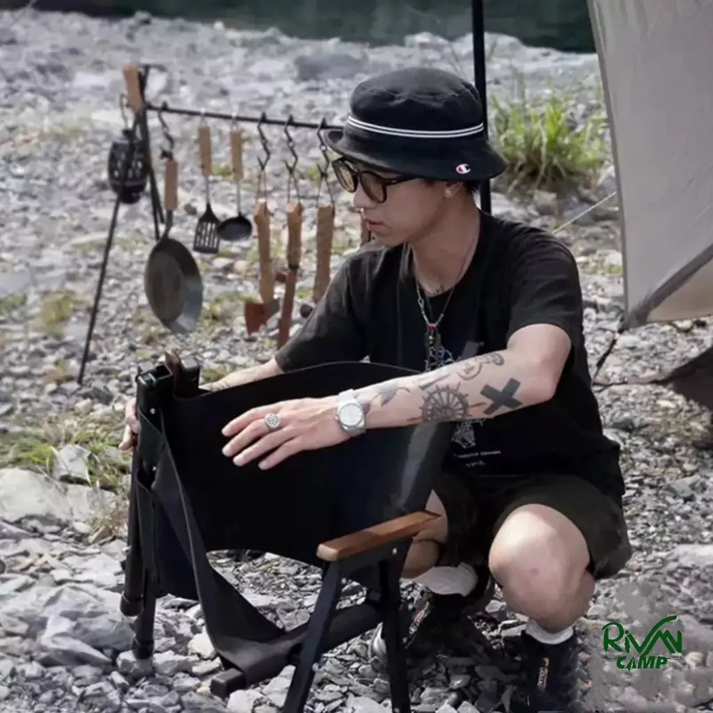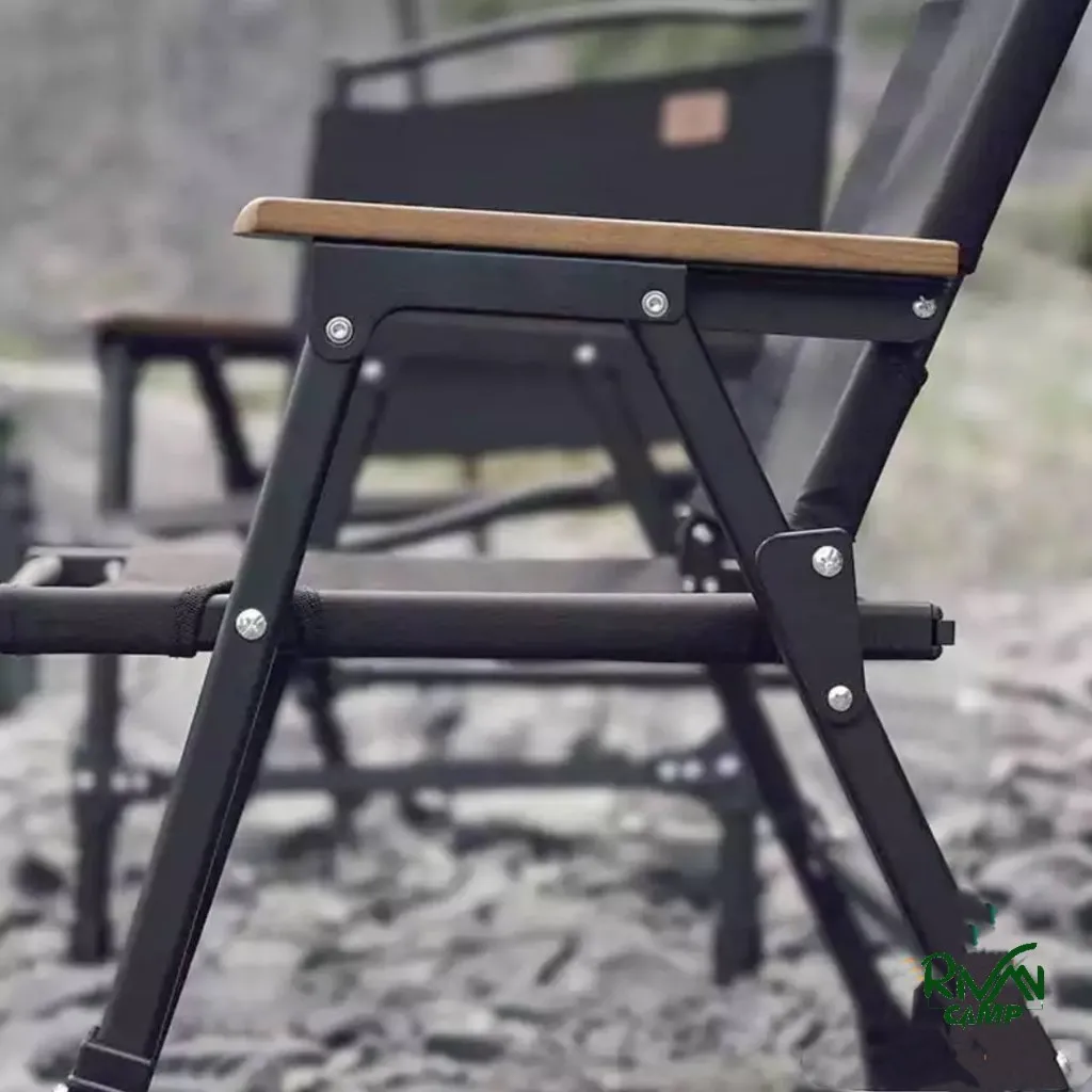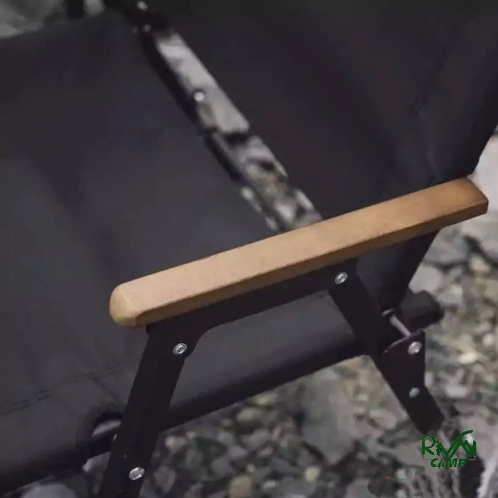 متریال پارچهای نشیمنگاه و پشتی از پارچه آکسفورد 600D است که پوشش مقاومی در برابر ساییدگی ارائه میدهد. دستههای صندلی از چوب راش طبیعی (beech wood) ساخته شدهاند که نه تنها زیبایی بصری دارند بلکه حس گرما و راحتی را افزایش میدهند. برای جلوگیری از لغزش روی سطحهای صاف یا ناهموار، زیر پایههای صندلی پدهای ضدلغزش تعبیه شده است که به پایداری بیشتر کمک میکنند.