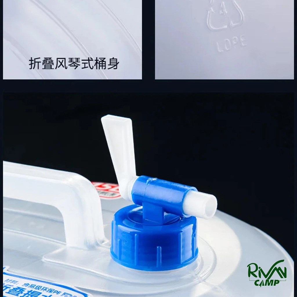 گالن آب تاشوی نیچرهایک مدل NH14S002-T با حجم ۱۰ لیتر، وزن ۲۱۶ گرم، ابعاد جمع‌شده ۳ × ۲۳ × ۲۳ سانتی‌متر، تحمل دما از منفی ۲۰ تا ۸۰ درجه، دارای شیر قطع و وصل آب، جنس پلی‌اتیلن PE.