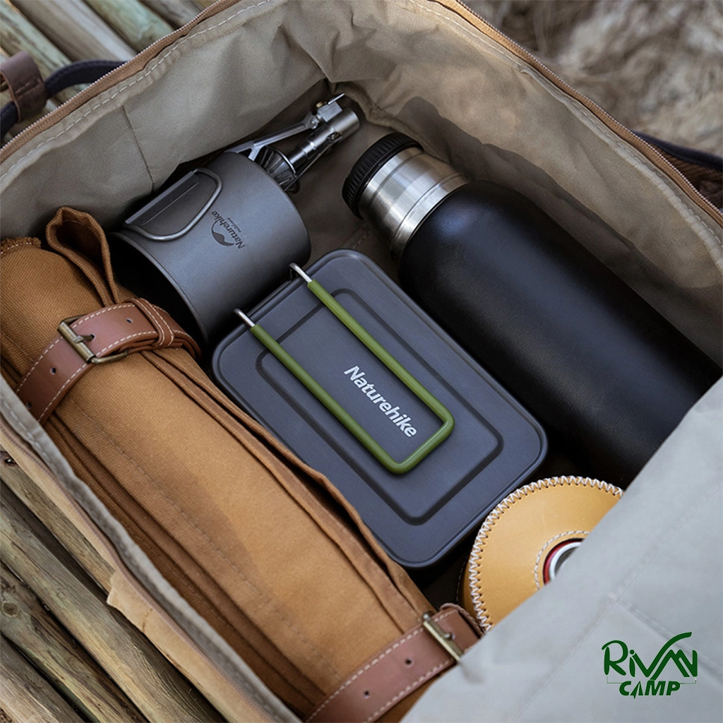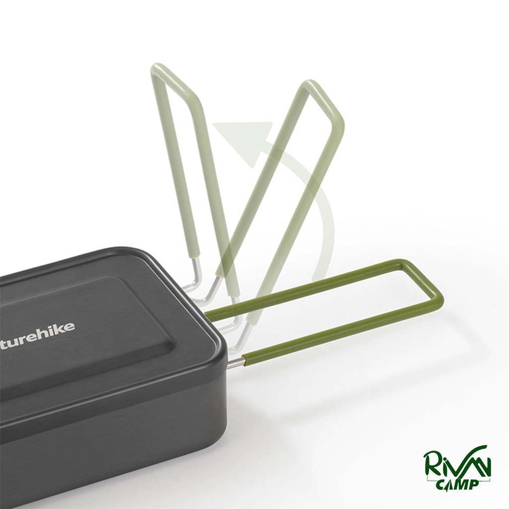 ظرف غذا نیچرهایک مدل NH21CJ011 با وزن سبک، بدنه آلومینیومی با پوشش تفلون، ابعاد جمعوجور، دسته تاشو سیلیکونی، کاور محافظ، مناسب برای سفر و کمپینگ.