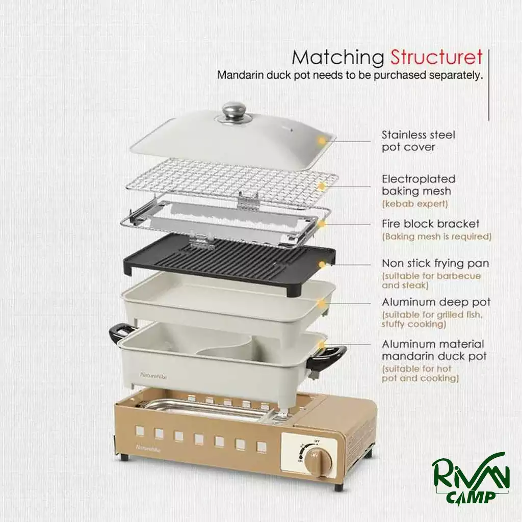 اجاق گاز کاستی چند منظوره نیچرهایک مدل CNH22CJ007 از طیف وسیعی از قابلمهها و کپسولهای گازی پروپان پشتیبانی میکند.