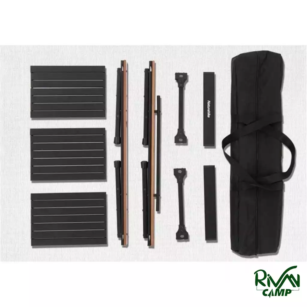 میز ترکیبی تاشو نیچرهایک، از آلیاژ آلومینیوم و چوب راش است که علاوه بر استحکام، ظاهر شیک و مدرنی به آن میدهد. قابلیت جمعشدن در ابعاد 92.5 × 23 × 10 سانتیمتر است و به راحتی در صندوق عقب خودرو قرار میگیرد.