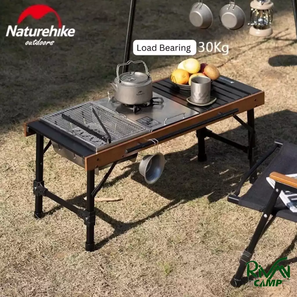میز ترکیبی تاشو نیچرهایک IGT مدل NH21JU011 با وزن ۳.۶ کیلوگرم و تحمل وزن ۳۰ کیلوگرم، برای کمپینگ و سفرهای فضای باز طراحی شده است. ترکیب آلومینیوم و چوب راش، دوام و زیبایی این میز را تضمین میکند.