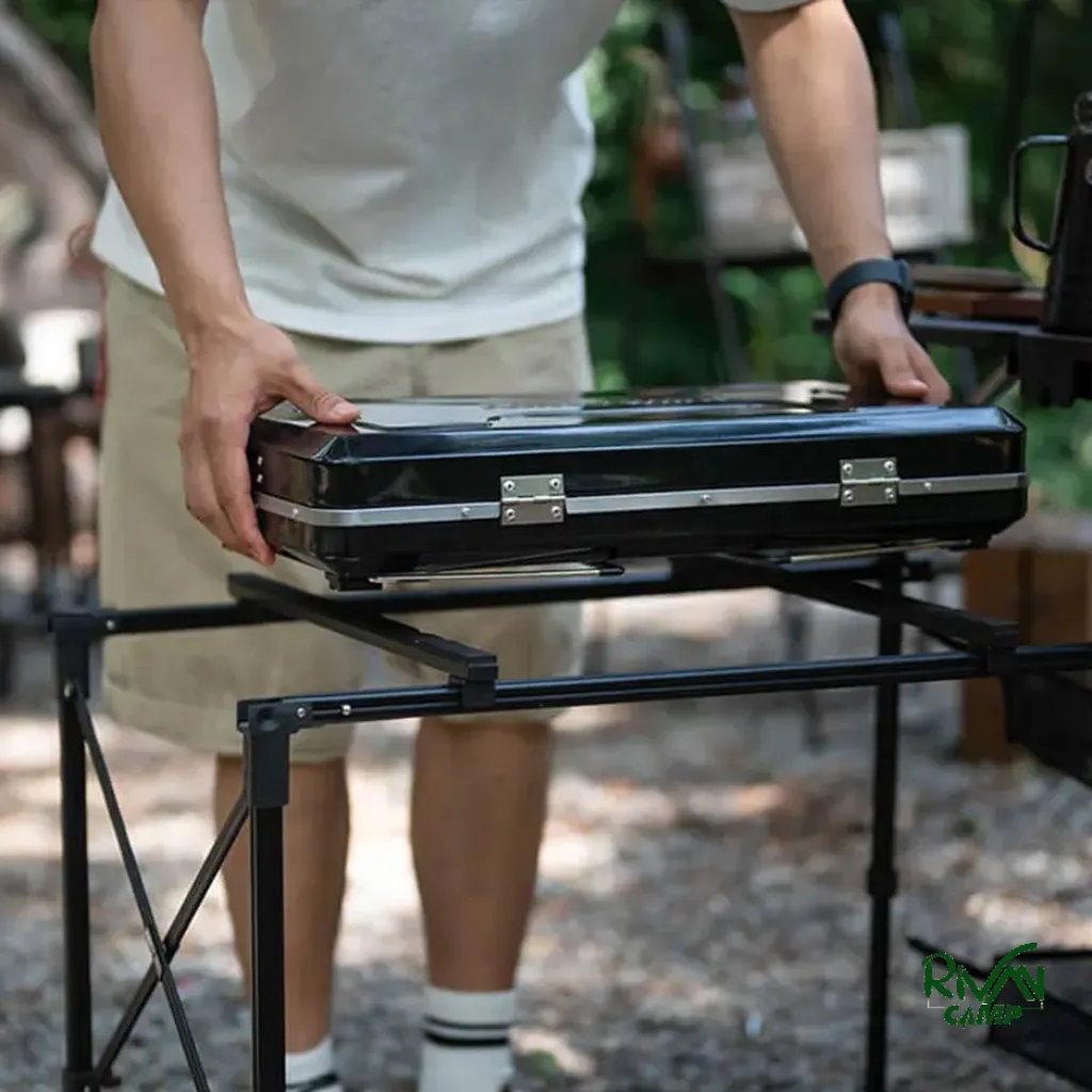 میز آشپزی نیچرهایک مدل NH22JU017 با طراحی تاشو و وزن سبک ۵.۷ کیلوگرم، گزینهای مناسب برای آشپزی در طبیعت، کمپینگ و سفرهای جادهای است. بدنهی آن از ترکیب آلومینیوم و فایبرگلاس ساخته شده که در برابر ضربه، حرارت و رطوبت مقاوم است. این میز در حالت باز ابعادی برابر با ۱۵۰ × ۶۰ × ۸۰ سانتیمتر دارد و در حالت بسته بهراحتی قابل حمل است. سطح شیشهای مقاوم، دو سبد توری، محل مخصوص اجاق، و پایه چراغ با ارتفاع حدود ۱۲۸ سانتیمتر از جمله امکاناتی هستند که کارایی آن را در فضای باز افزایش میدهند. تحمل وزن تا ۳۰ کیلوگرم و پایداری مناسب روی زمینهای ناهموار از دیگر ویژگیهای کاربردی این محصول است.