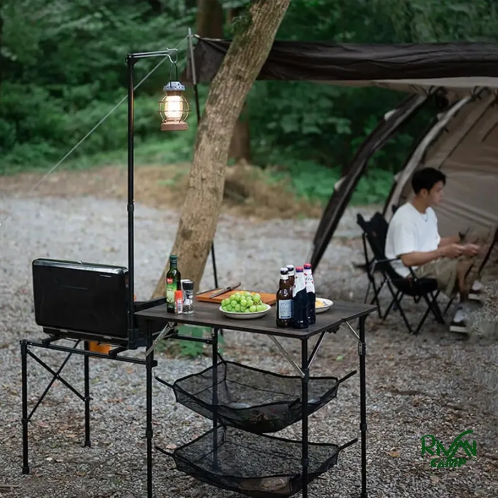 دو سبد توری که در زیر میز تعبیه شدهاند، فضای مناسبی برای قرار دادن مواد غذایی، ابزار آشپزی یا لوازم جانبی فراهم میکنند. در بخش کناری میز آشپزی نیچرهایک مدل NH22JU017، فضایی مخصوص برای قرار دادن اجاقهای گازی قابلحمل در نظر گرفته شده که متناسب با نیاز قابل تنظیم است. همچنین یک پایه عمودی با ارتفاع تقریبی ۱۲۸ سانتیمتر برای نصب چراغ تعبیه شده که روشنایی کافی برای آشپزی در شب یا محیطهای کمنور را فراهم میآورد.