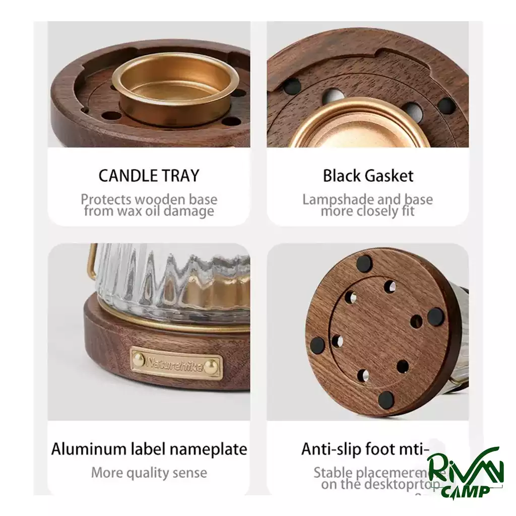 استفاده از شیشه شفاف برای محفظه شمع، امکان مشاهده شعله و پخش نور یکنواخت را فراهم میکند. فلز و چوب گردو نیز استحکام بدنه را افزایش داده و طول عمر محصول را تضمین میکند. این ترکیب مواد، فانوس را به یک ابزار قابل اعتماد برای سفرهای شبانه و استفاده طولانیمدت تبدیل میکند.