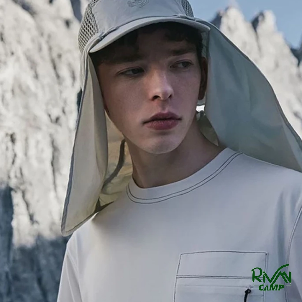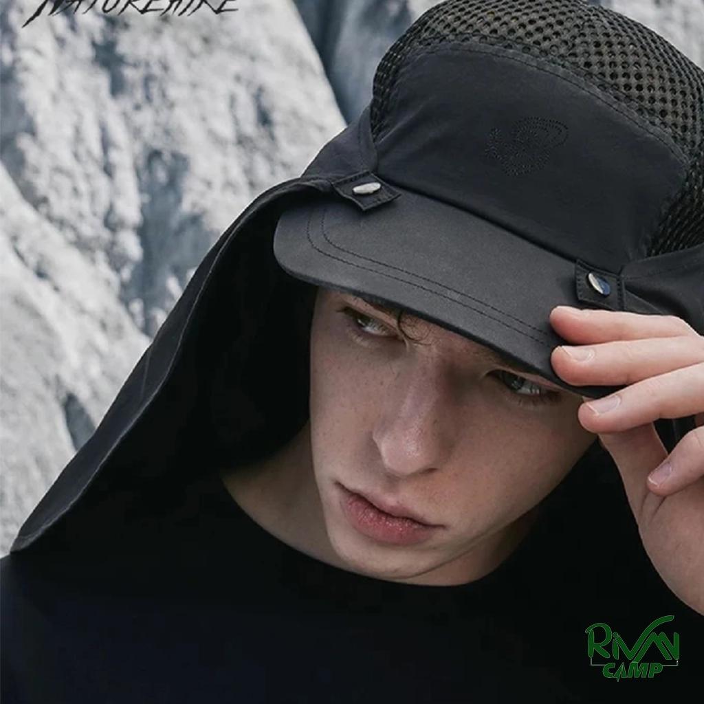کلاه نقابدار نیچرهایک مدل CNH23MZ013، سبک و ضدآب با محافظت UV بالا، پوشش گردن جداشونده، پارچه تنفسپذیر و خشکشونده سریع، مناسب سفر و فعالیتهای فضای باز.