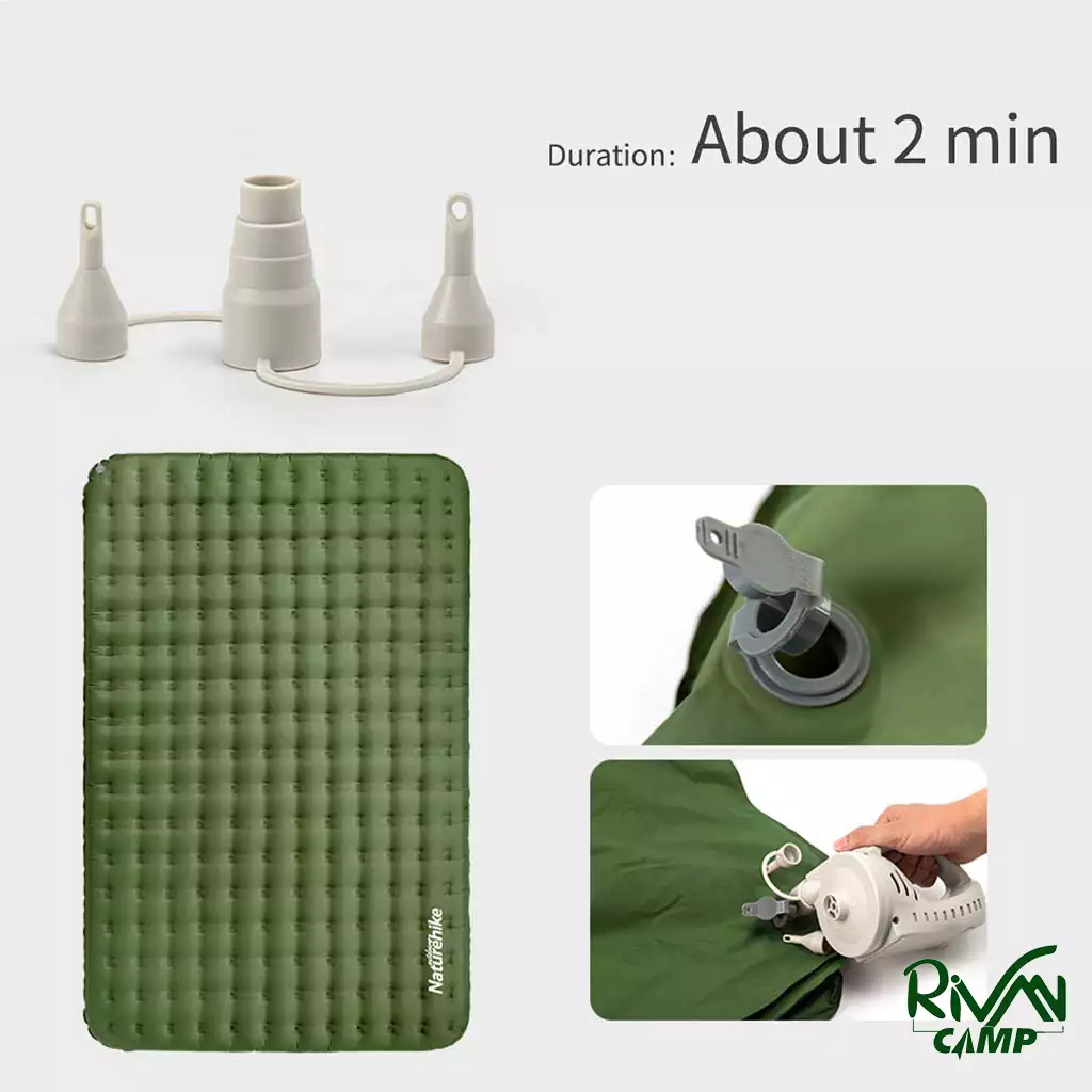 ظرفیت باتری لیتیومی ۴۰۰۰ میلی‌آمپر ساعتی امکان ۲۰ دقیقه کارکرد مداوم را فراهم می‌کند و از طریق تایپ سی تنها در ۴ ساعت شارژ کامل می‌شود. این پمپ می‌تواند در حدود ۲ دقیقه یک تشک بادی دونفره (مدل NH19QD010) را باد کند. علاوه بر قابلیت دمیدن، امکان مکش هوا نیز دارد که آن را به ابزاری دوکاره و همه‌کاره برای سفر، خانه و طبیعت‌گردی تبدیل کرده است.