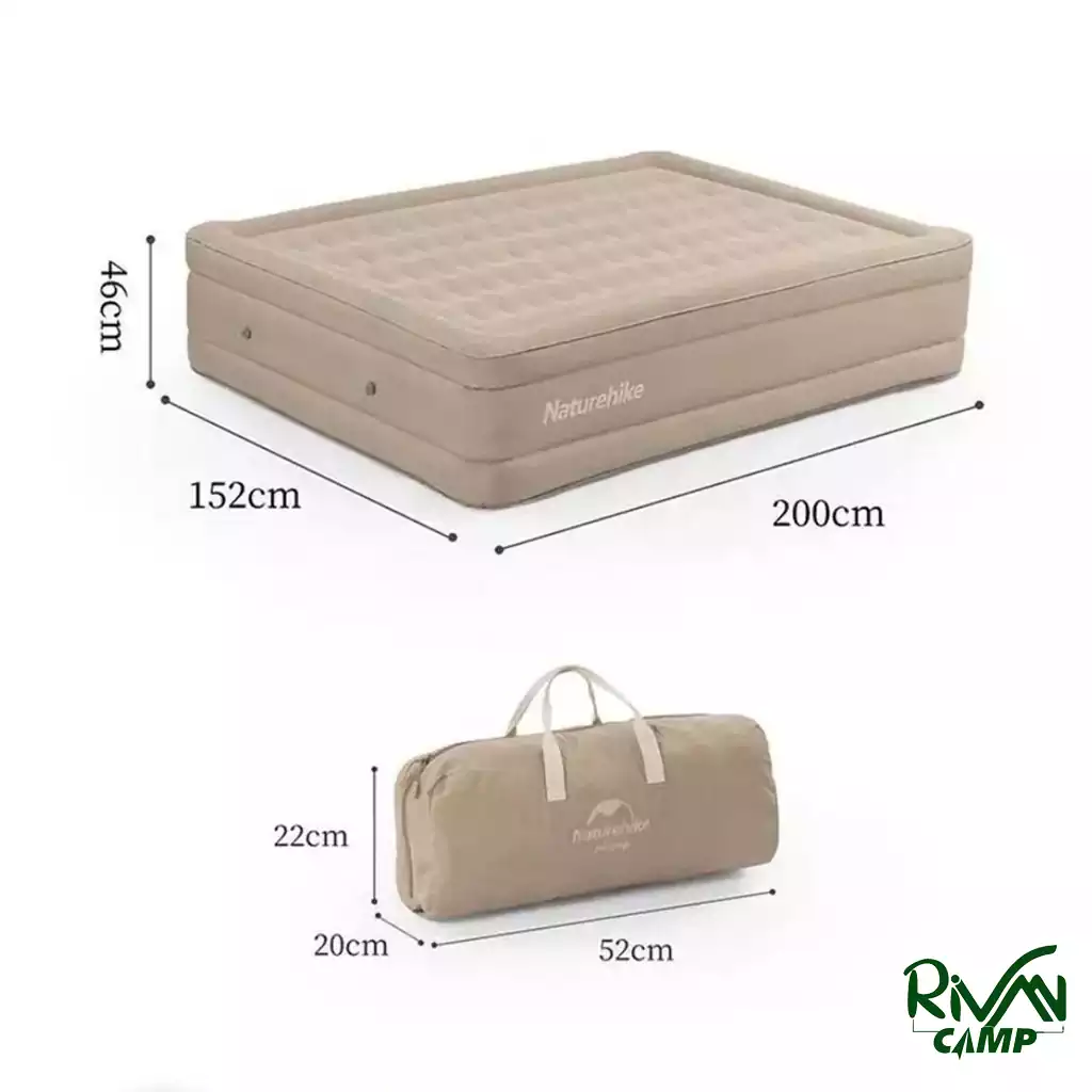 تشک بادی بلند نیچرهایک مدل NH21FCD08 یکی از محصولات حرفه‌ای و باکیفیت برند محبوب Naturehike است که برای افرادی طراحی شده که به دنبال ترکیبی از راحتی، دوام و قابلیت حمل بالا در سفرها، کمپینگ‌ها و طبیعت‌گردی‌های خود هستند. این تشک با وزن ۴.۶ کیلوگرم، ابعاد ۲۰۰×۱۵۲×۴۶ سانتی‌متر در حالت باز و اندازه جمع‌شده‌ ۵۲×۲۰×۲۲ سانتی‌متر، به راحتی در کیف مخصوص خود جای می‌گیرد و حمل آن بسیار آسان است. بدنه آن از پارچه پوست هلو با پوشش TPU است که علاوه بر لطافت سطح، مقاومت عالی در برابر نفوذ آب و سایش دارد. ظرفیت آن برای دو نفر طراحی شده و تا ۳۰۰ کیلوگرم وزن را به ‌راحتی تحمل می‌کند.