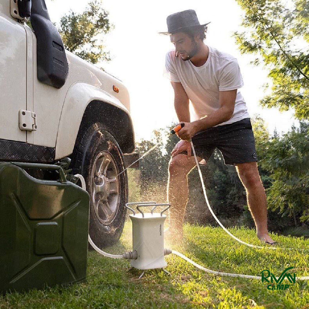 دوش شارژی نیچرهایک مدل NH20SJ018 یک ابزار کارآمد و ضروری برای کمپینگ، سفرهای جاده‌ای، استفاده در ساحل و به‌ویژه در شرایط فضای باز است. این دوش با ظرفیت حداکثری مخزن 32 لیتر، قابلیت تنظیم فشار آب، و باتری داخلی قابل شارژ، می‌تواند تا 120 دقیقه در حالت اقتصادی (2.4 لیتر در دقیقه) یا 50 تا 70 دقیقه در حالت پرقدرت (3.6 لیتر در دقیقه) استفاده شود و با طراحی منحصر به‌فرد و سه حالت پاشش مختلف (ملایم، گسترده و نقطه‌ای)، تجربه‌ای مشابه دوش خانگی را در طبیعت فراهم می‌آورد. این محصول همراه با کیف حمل، نازل دوش و نازل مجزا برای شستشوی خودرو عرضه می‌شود و دارای شلنگ ورودی آب 120 سانتی‌متری و شلنگ خروجی 600 سانتی‌متری است.