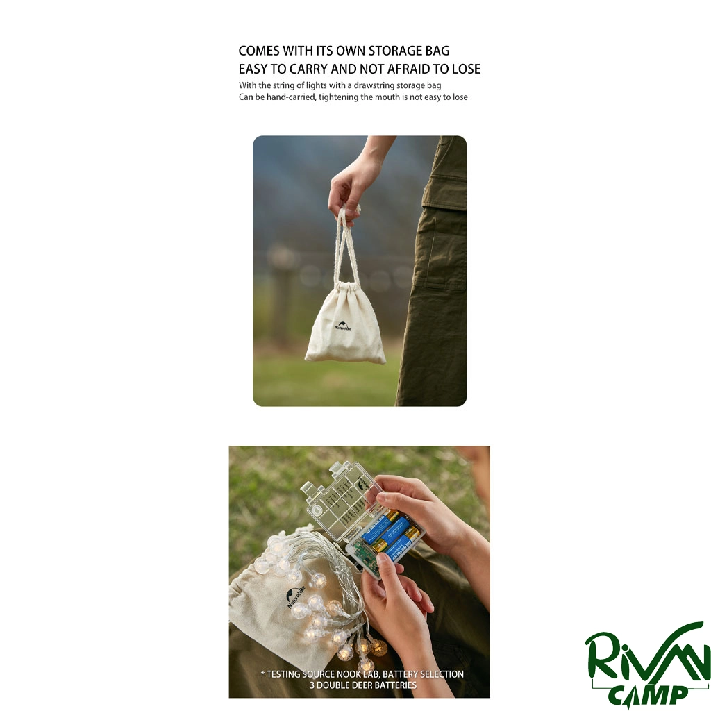 ریسه NATUREHIKE مدل CNH22DQ028 به پایه نصب مجهز است که امکان استفاده راحت در مکانهای مختلف را فراهم میکند. وجود کاور حمل باعث میشود حملونقل و نگهداری آن سادهتر شود. با توجه به نوع نور و طراحی لامپها، برای استفاده در فضاهای بیرونی یا محیطهای کمپینگ گزینه مناسبی است. نصب آن بدون نیاز به ابزار خاص انجام میشود.