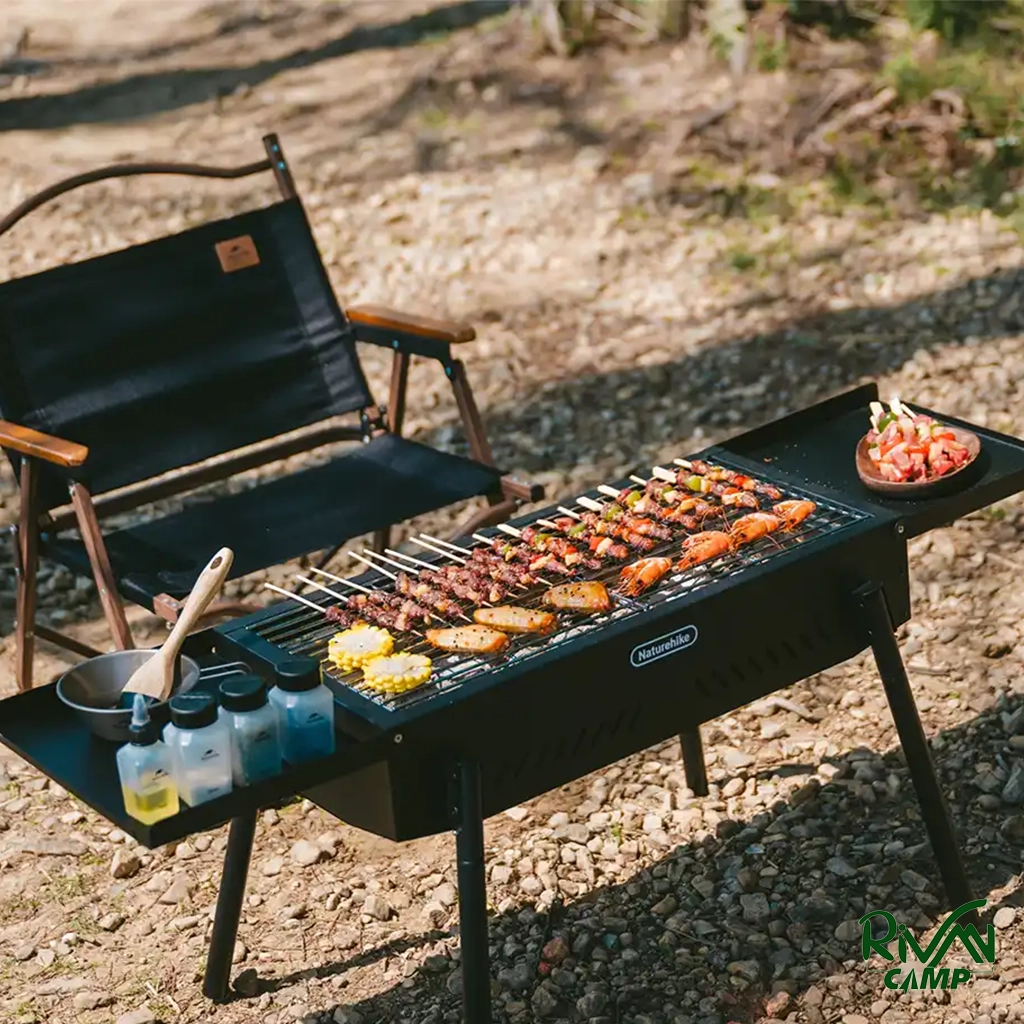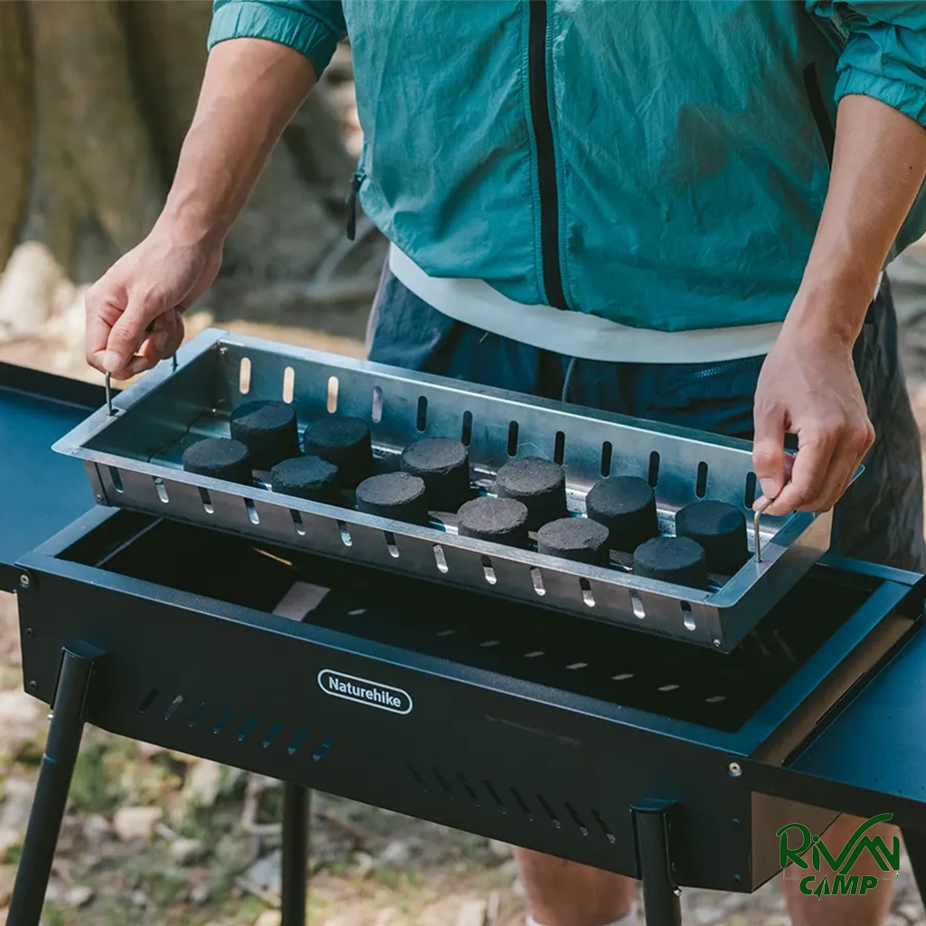 گریل ایستاده چندمنظوره نیچرهایک مدل CNK2550CF013 با ساختار مقاوم از فولاد ضد زنگ، طراحی تاشو و قابلحمل، دارای مخزن زغال جداشونده و سینی خاکستر، مجهز به توریهای مستحکم و پایههای ثابت، مناسب برای پختوپز در فضای باز، پیکنیک و کمپینگ.