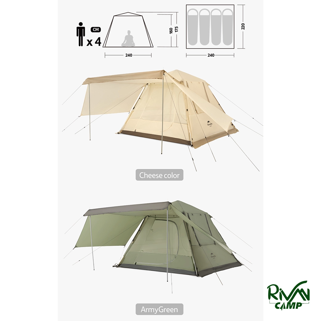 چادر نیچرهایک NH21ZP010 فضای کافی برای چهار نفر فراهم میکند و ابعاد ۲۲۰ × ۲۴۰ × ۱۶۰ سانتیمتر امکان حرکت و استراحت راحت داخل چادر را میدهد. ارتفاع مناسب فضای نشستن و فعالیت کوتاه را آسان میکند و طراحی بهینه موجب استفاده حداکثری از فضای داخلی میشود. وجود فضای مناسب برای وسایل شخصی، تجربهای منظم و راحت در سفرهای گروهی ایجاد میکند.